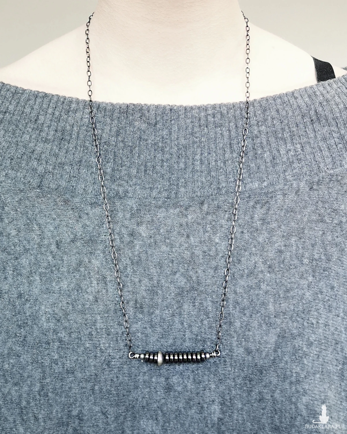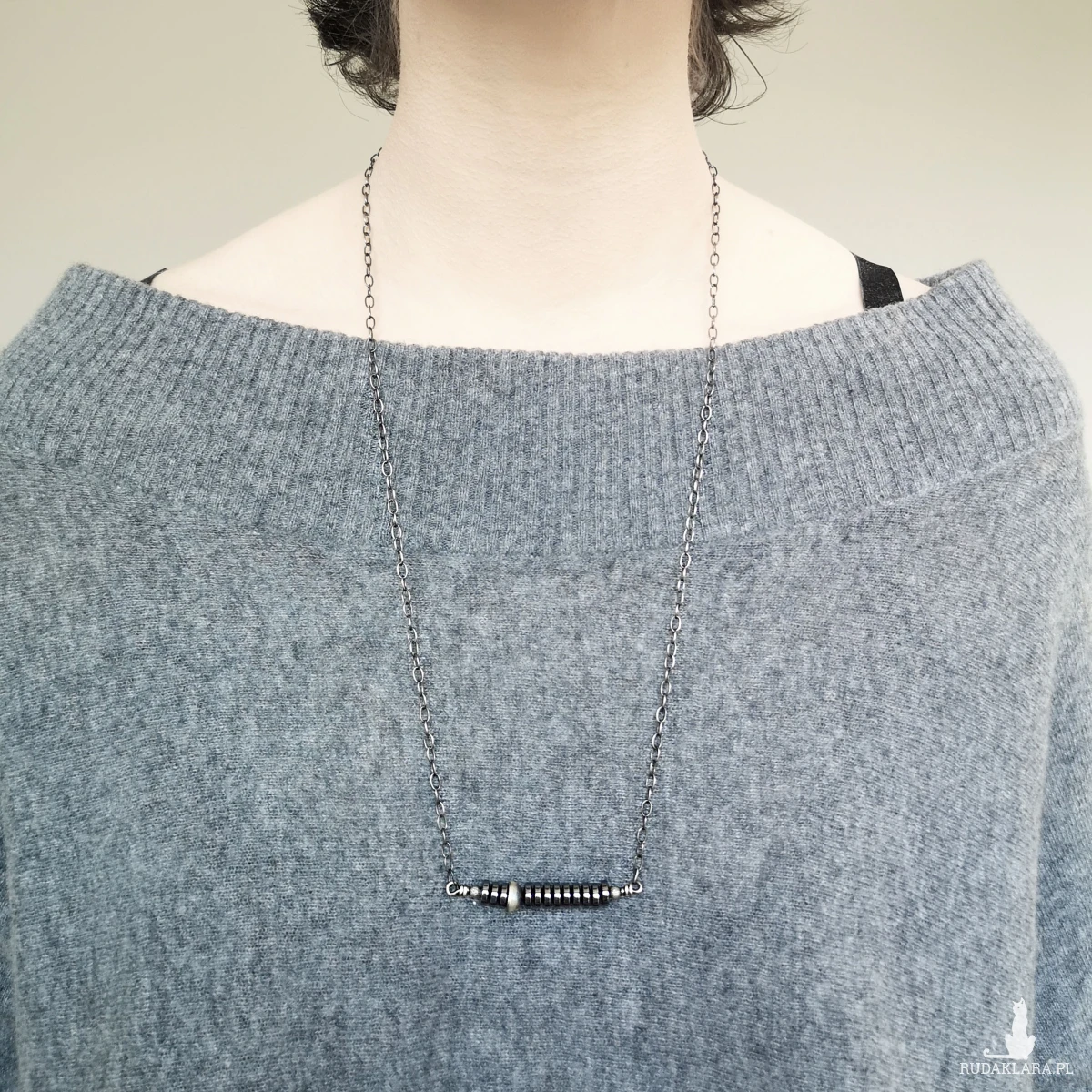 Naszyjnik wykonany ze srebra próby 925, patynowany i szczotkowany.