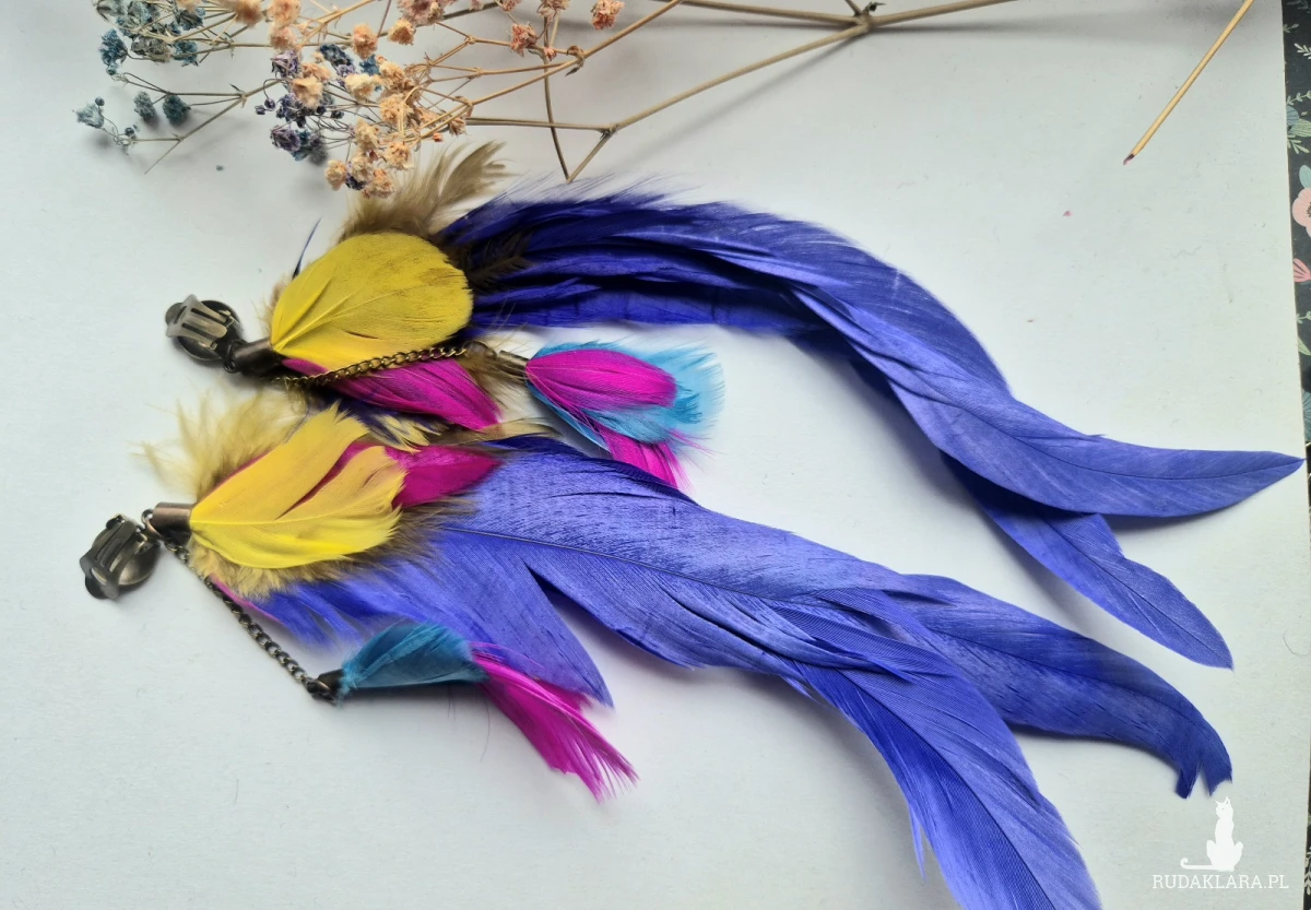 Klipsy rekodzielo kolorowe pióra lekkiej bardzo efektowne zrobione z miłością i pasją polecam