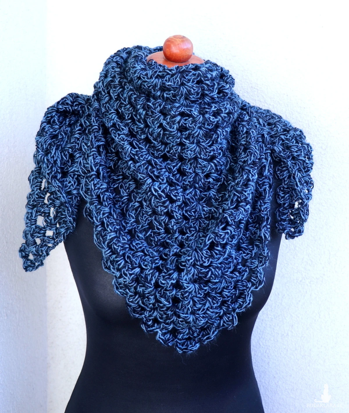 Chusta - apaszka zrobiona na szydełku z cieniutkiej akrylowej włóczki w kolorze czarnym i jeansowym.