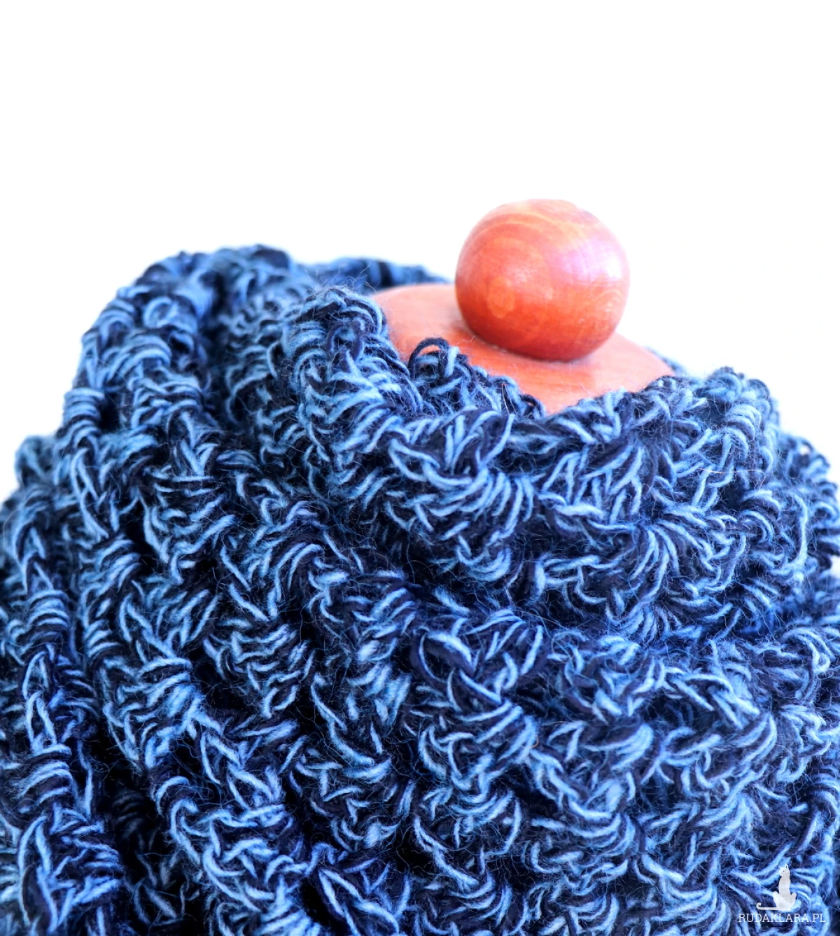 Proszę prać ręcznie w letniej wodzie z dodatkiem środków do prania wełny. Lekko odcisnąć i suszyć na płasko.