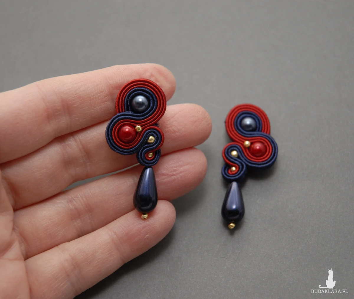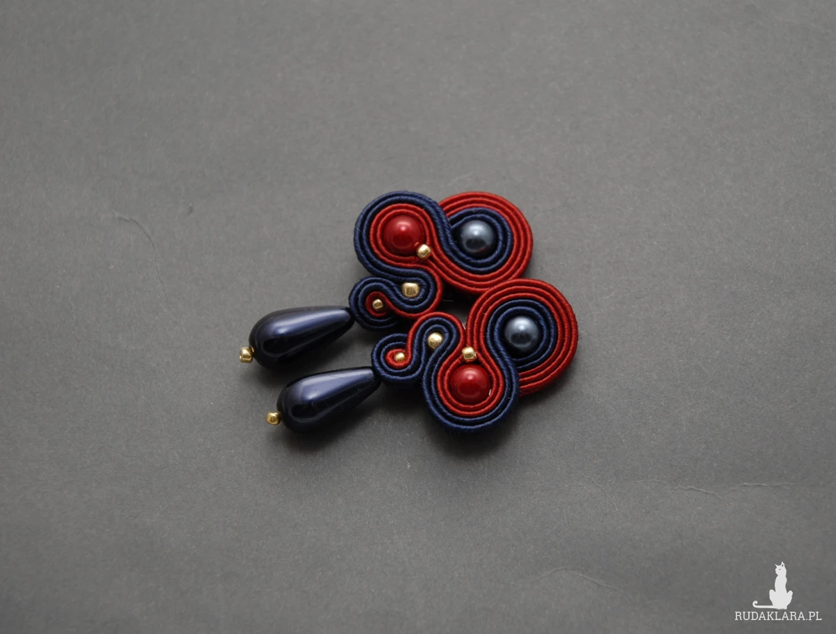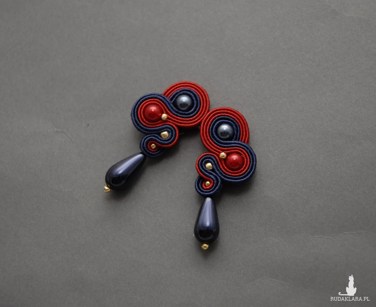 granatowo-czerwone kolczyki lub klipsy sutasz