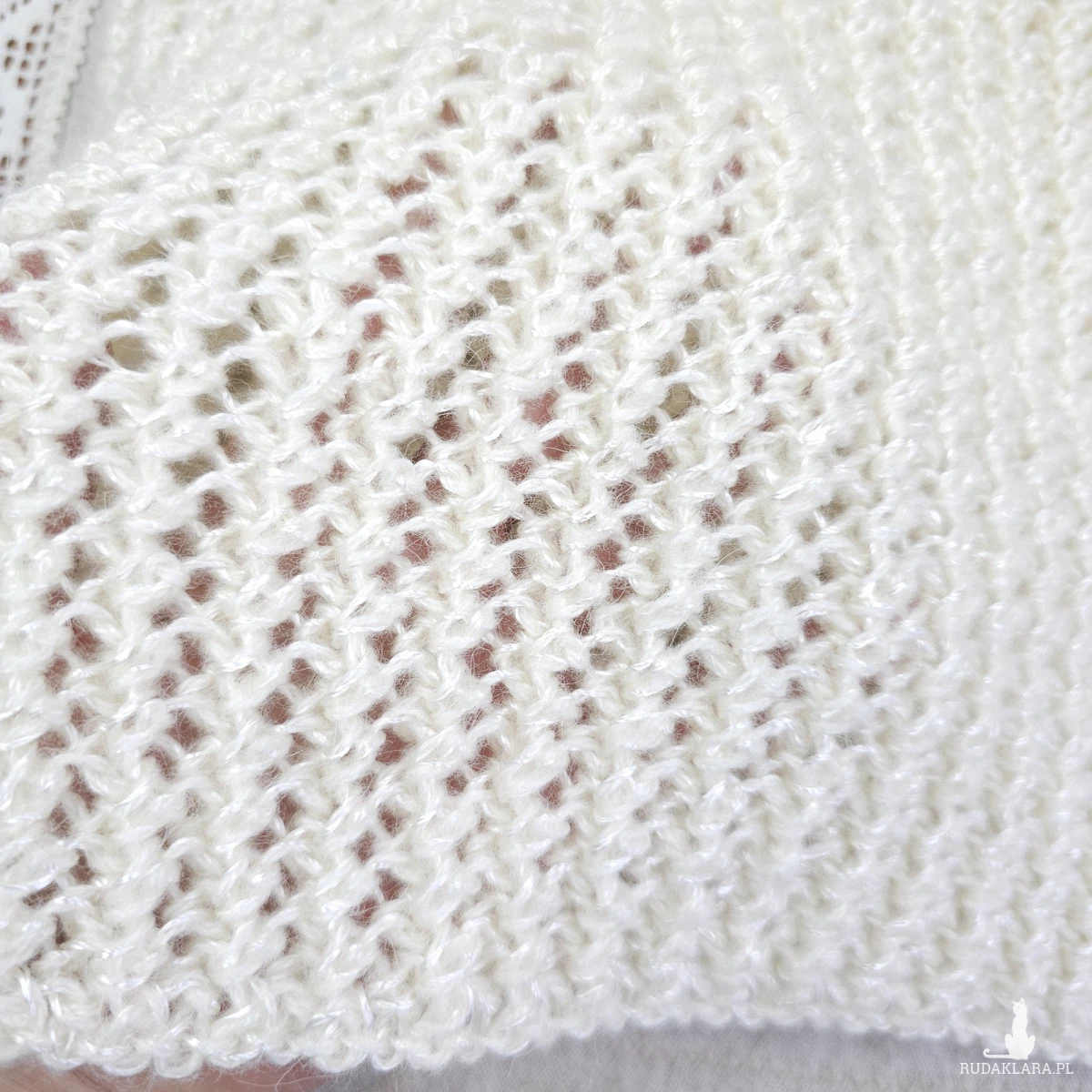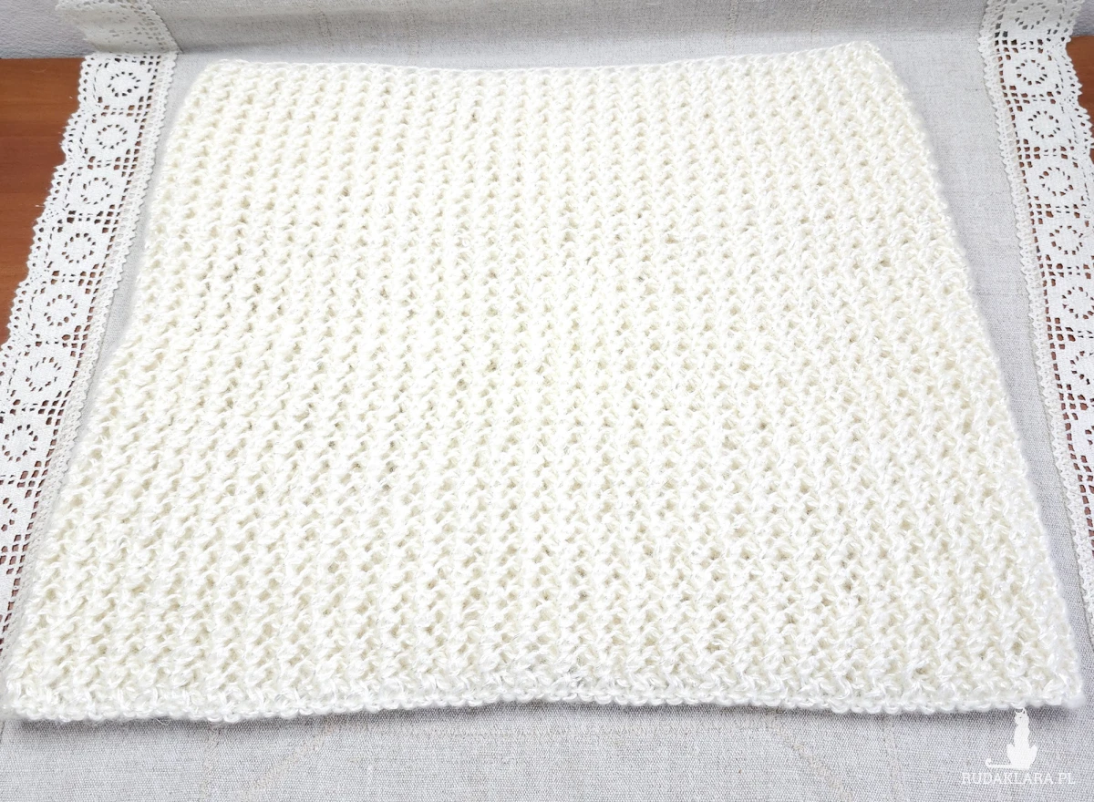 Wykonany ręcznie na drutach z mieszanki wysokiej jakości włóczki z alpaką i akrylem, gwarantuje miękkość, lekkość i doskonałe właściwości termiczne.