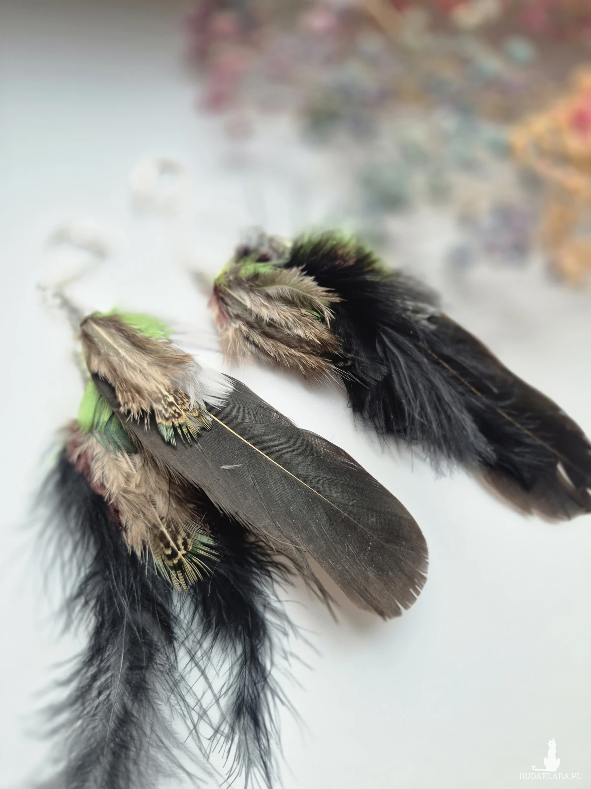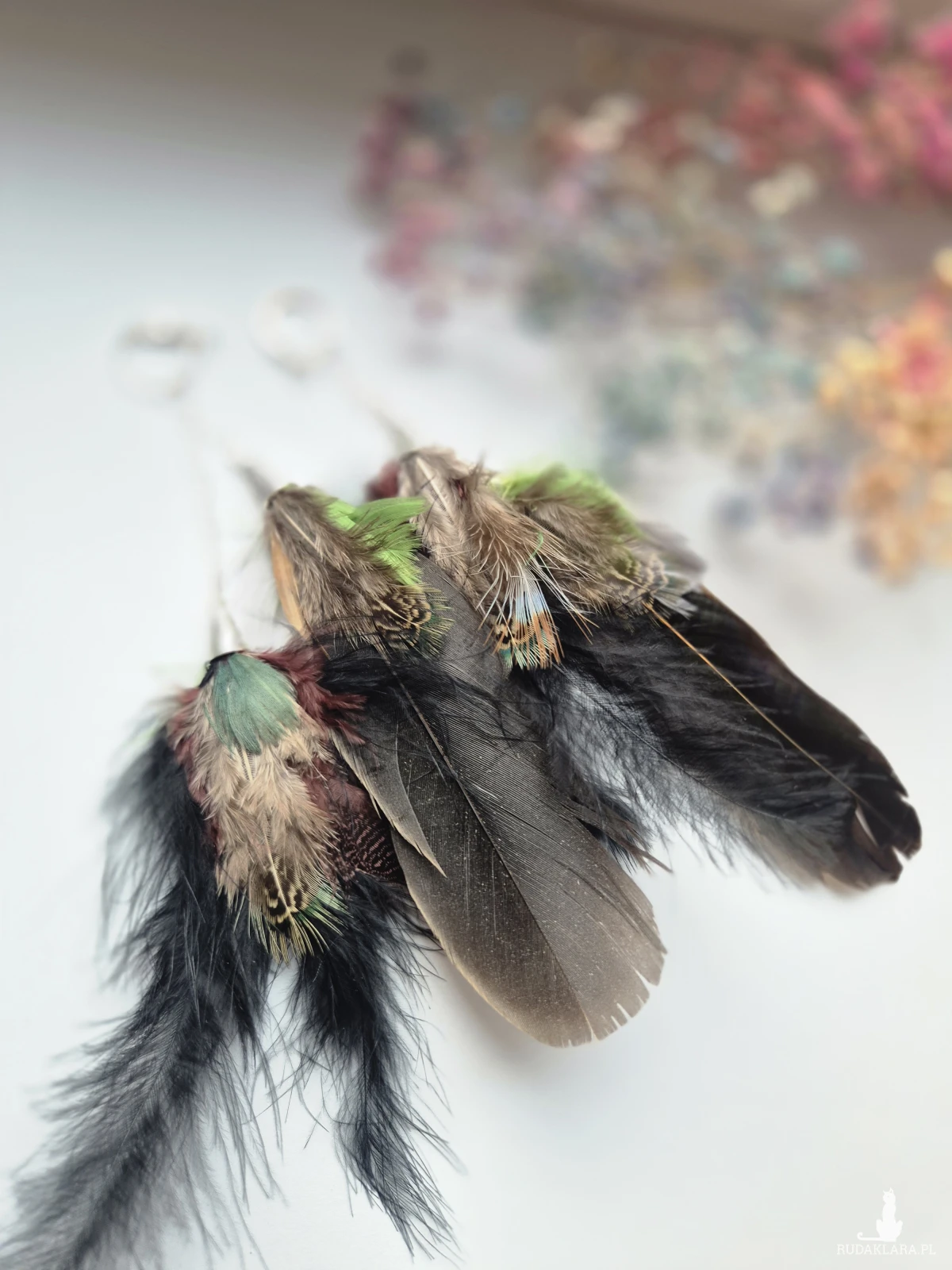 Kolczyki pióra boho kolory ziemi lekkie wykonane w pojedynczym egzemplarzu