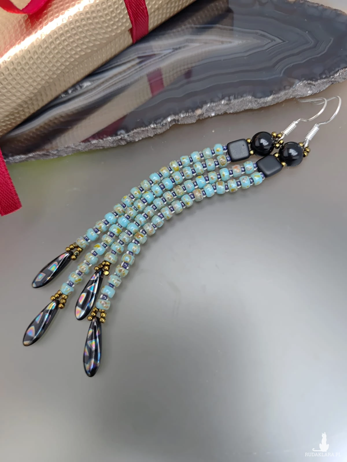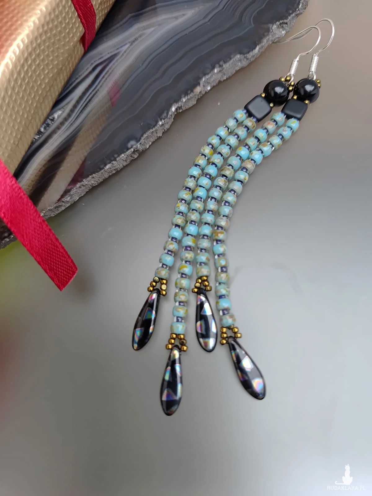 Kolczyki w kolorze zielonego turkusu, koraliki imitujące kamień z