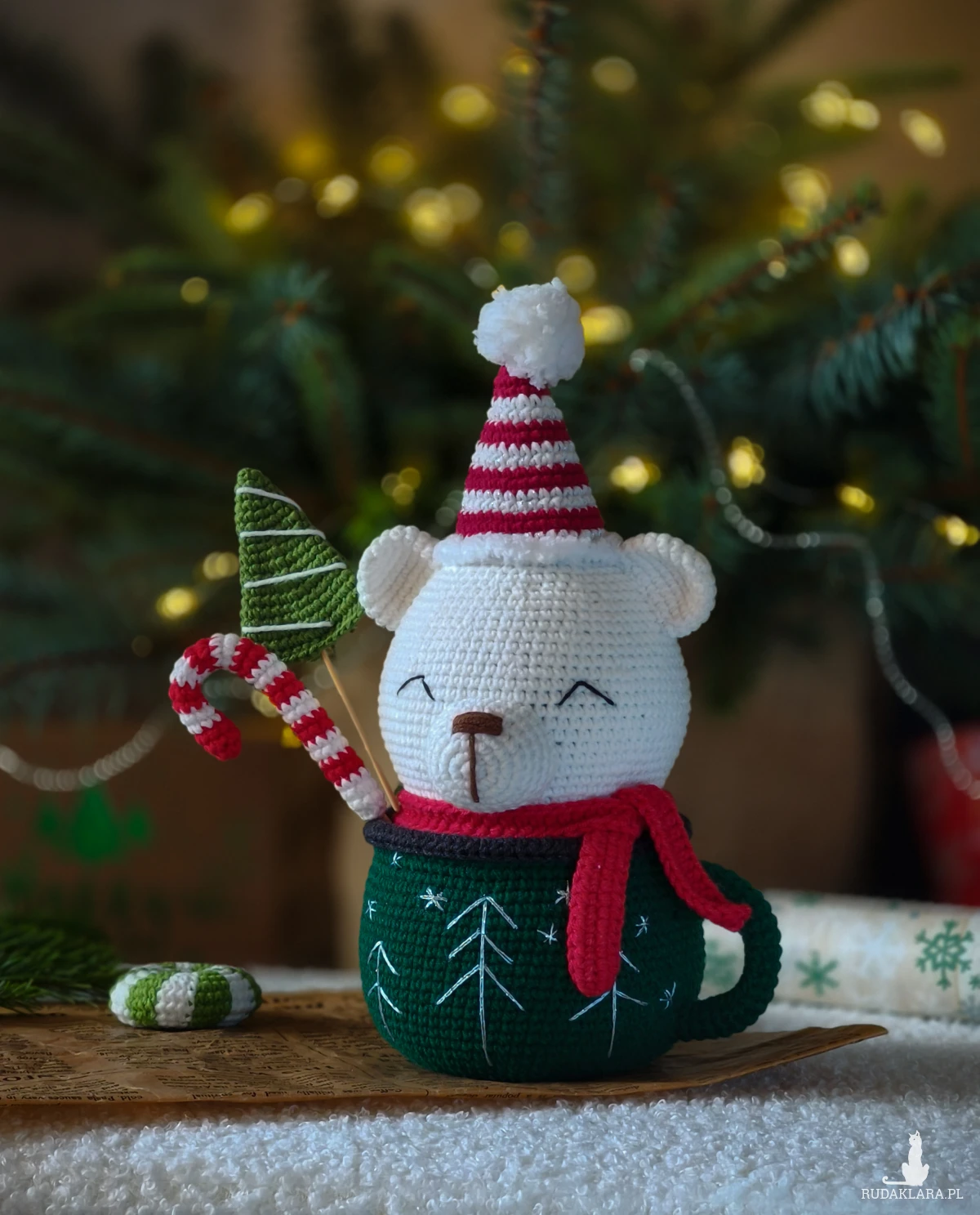 Świąteczny miś w kubku wykonany na szydełku to doskonały i unikalny prezent na Święta Bożego Narodzenia dla całej rodziny czy przyjaciół. To świetny prezent do dekoracji wnętrz lub unikalną dekoracją do biura czy na półkę z książkami.