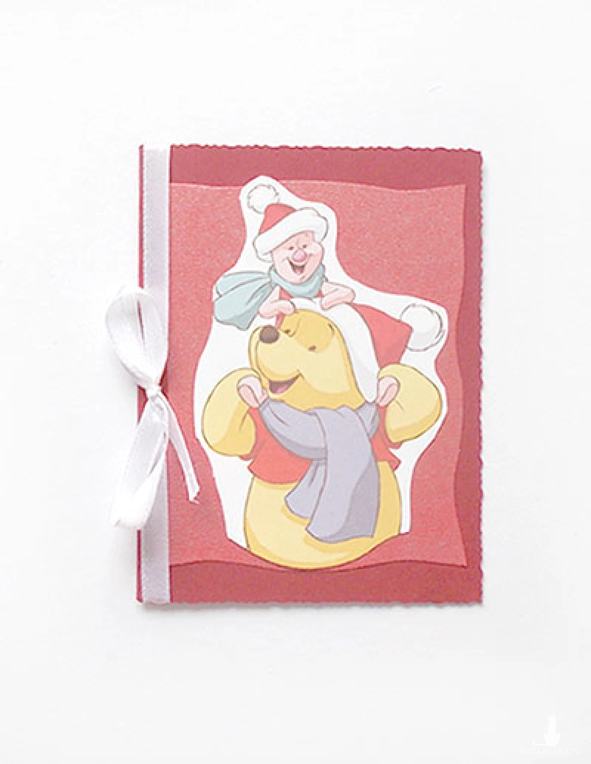 czerwone kartki świąteczne, Kubuś Puchatek kartki na święta Bożego Narodzenia, świąteczne kartki dla dzieci, Mikołajkowe kartki, kartki na Mikołaja, Boże Narodzenie kartki dla firm, karnety