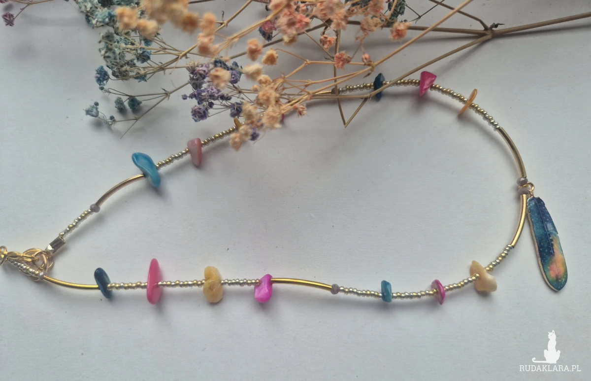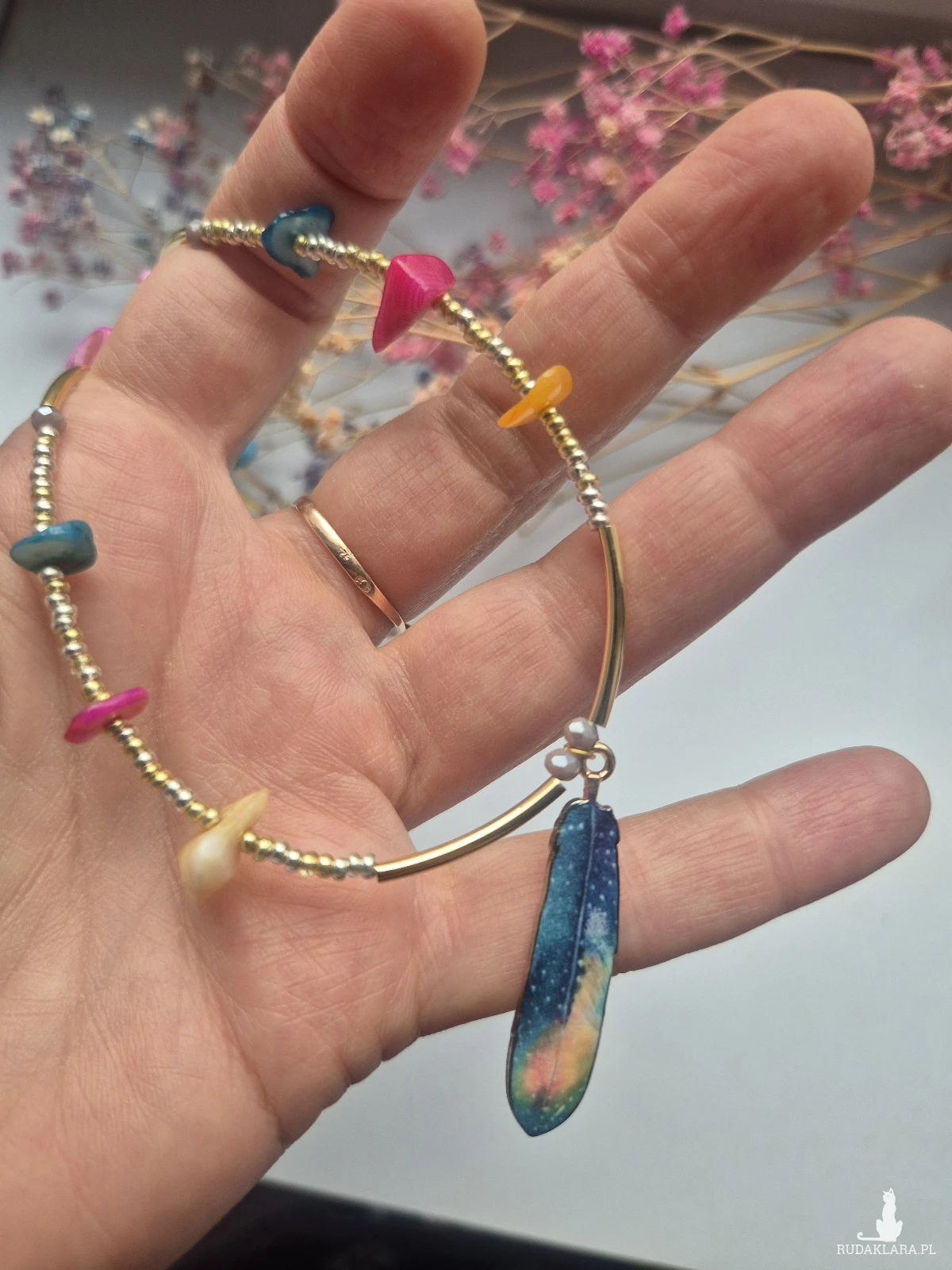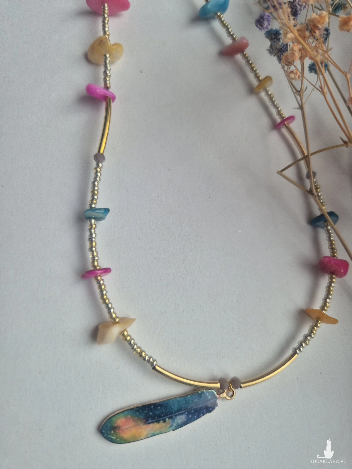 Naszyjnik koralikowy Boho z emaliowanym liściem polecam piękny w pojedynczym egzemplarzu Box X1