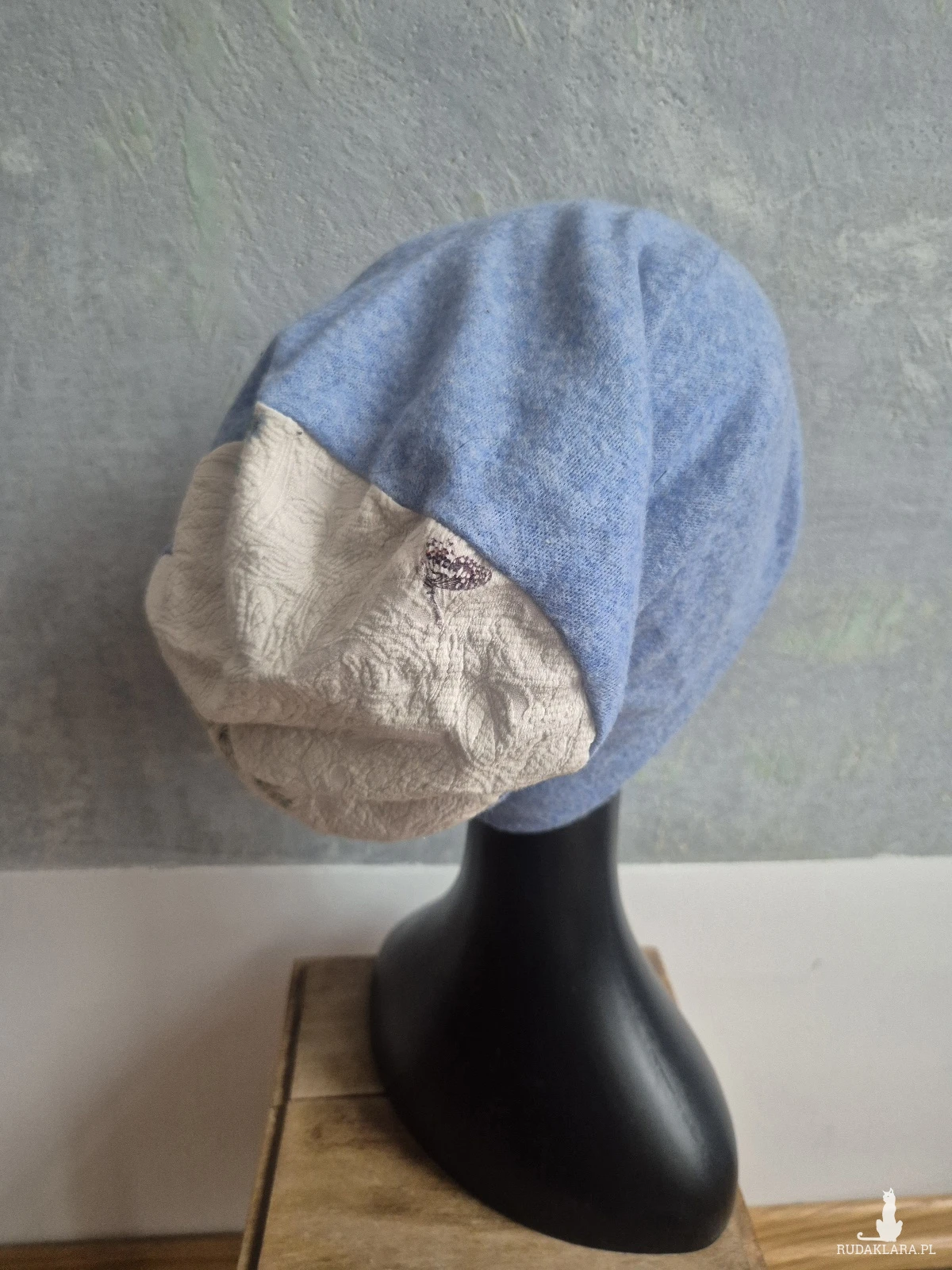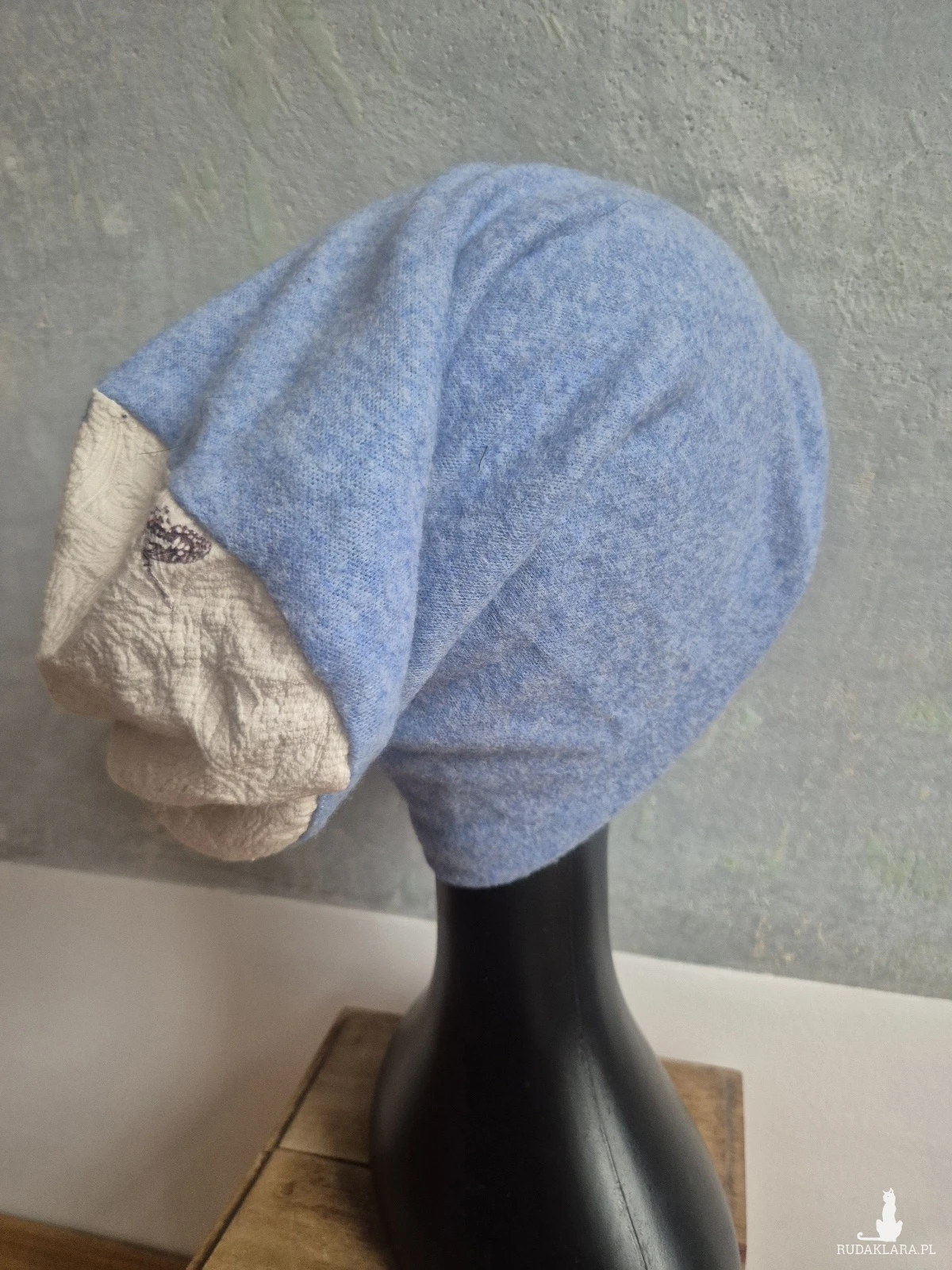 Czapka kolorowa niebieska Smerfetka wykonana w pojedynczym egzemplarzu na podszewce dobra na codzienne noszenie rozmiar uniwersalny Box A1