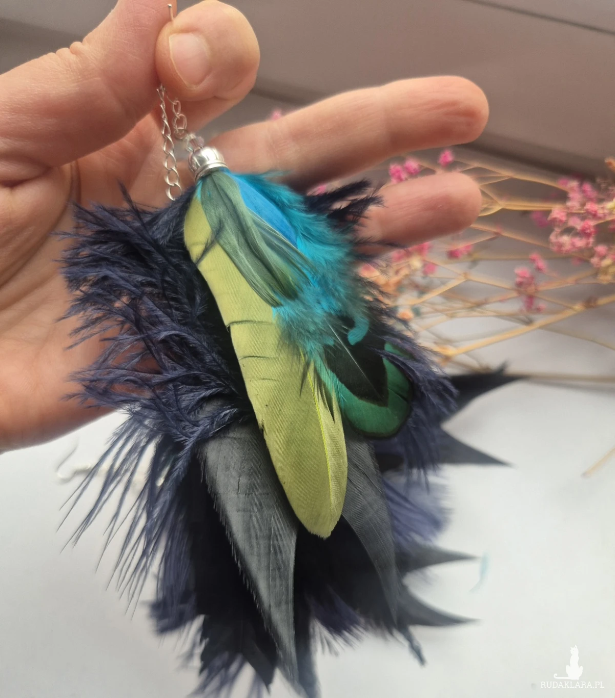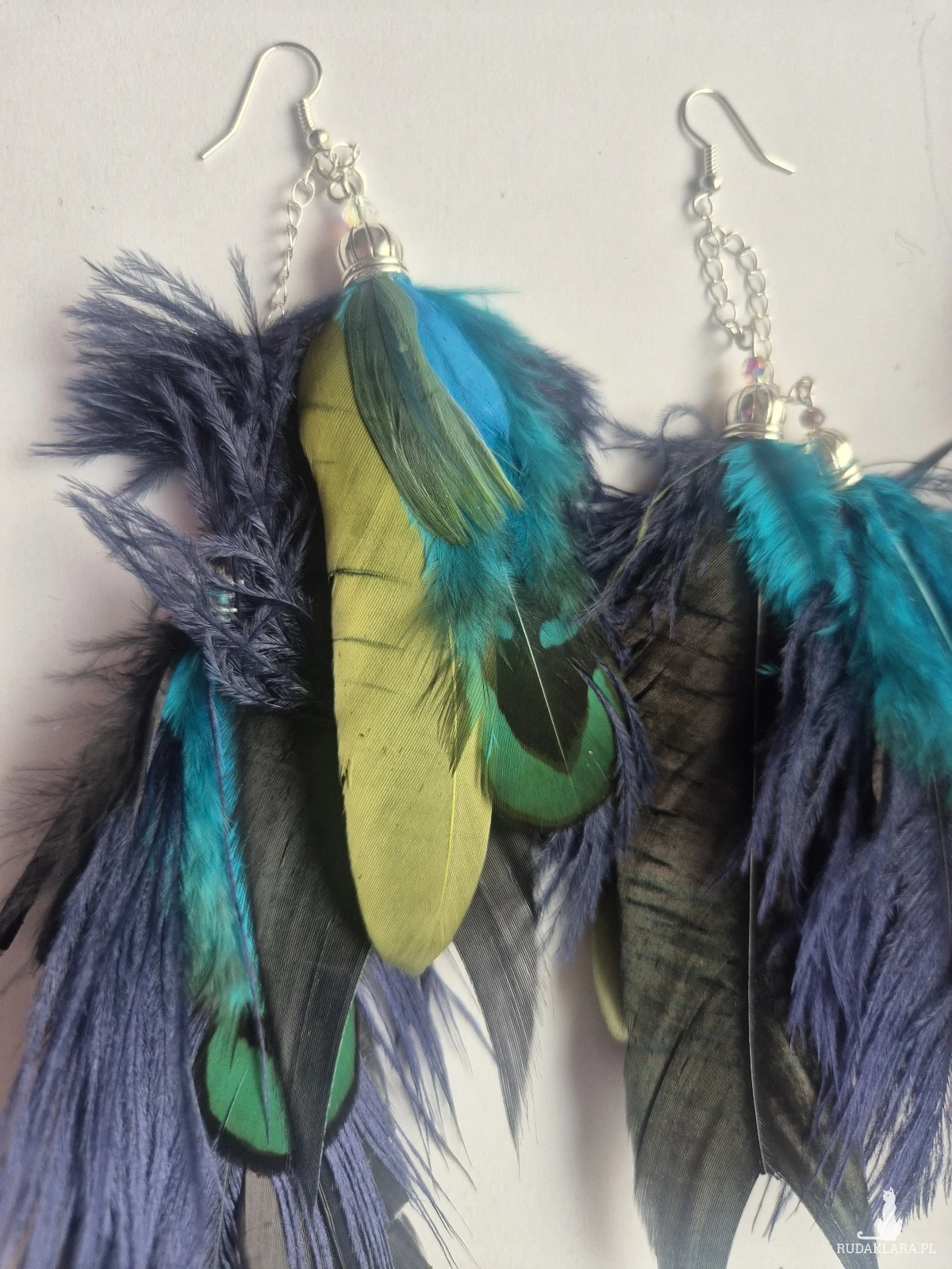 Kolczyki pióra boho kolorowe lekkie wykonane w pojedynczym egzemplarzu