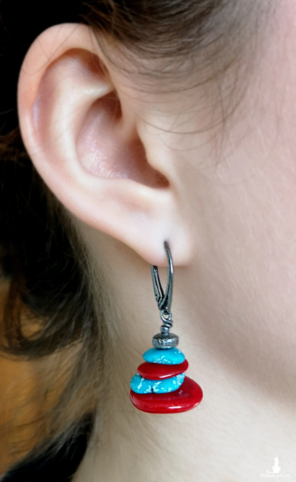 Kolczyki wykonane w mojej pracowni ze srebra próby 925, patynowane i szczotkowane.