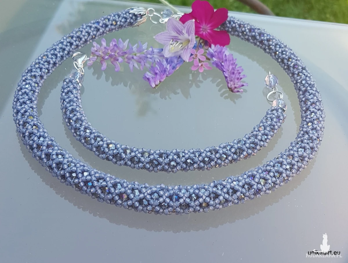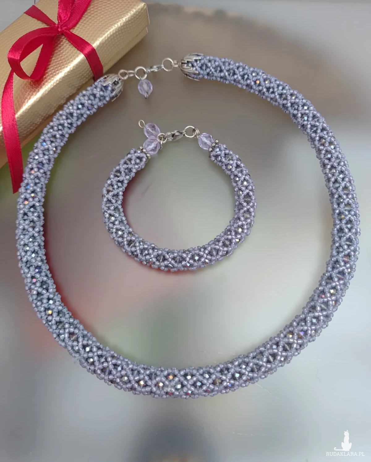 Naszyjnik wypleciony z kryształków i drobnych koralików japońskich Toho.