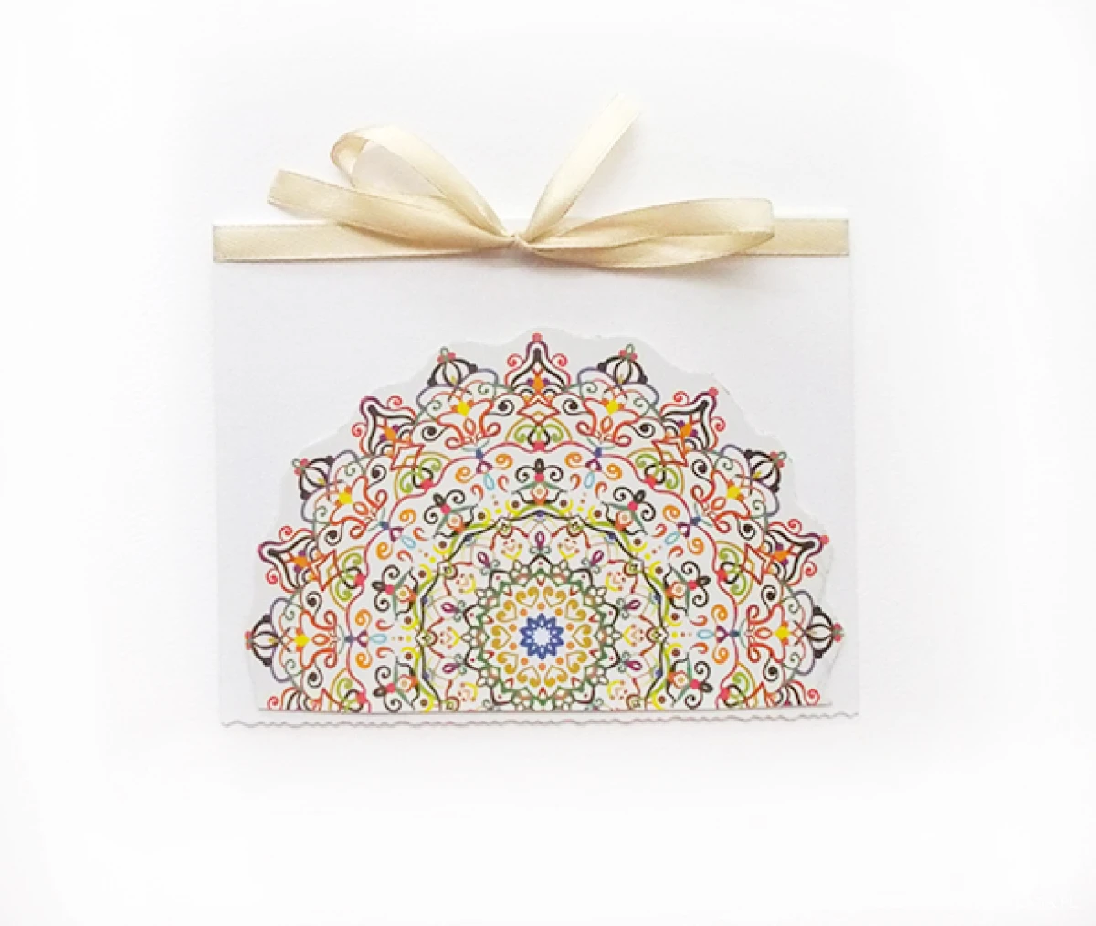 Oryginalna, otwierana kartka bez życzeń, perłowy kartonik, wstążeczka. Dołączona biała koperta.