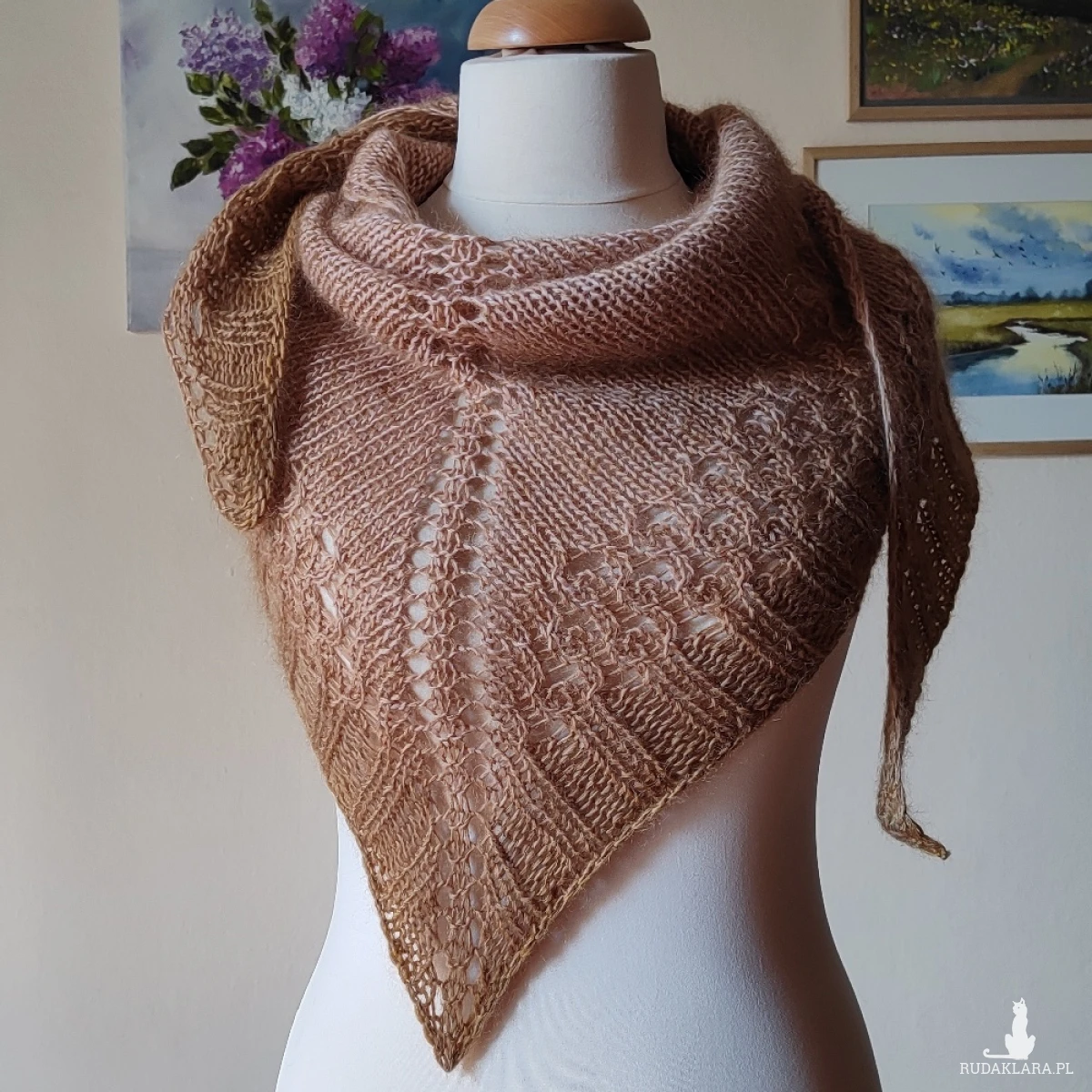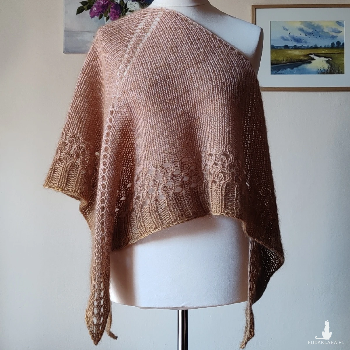 Miła, lekka, ciepła, szlachetna, klasyczna chusta wykonana ręcznie na drutach podwójną nitką z najwyższej jakości włóczek: jedna z nich, to najdelikatniejsza, australijska włóczka moherowo-jedwabna (70% moher, 30% jedwab), druga to fantastycznej jakości wełna kaszmirowa 100%, wyprodukowana ręcznie w rodzinnej manufakturze, we Włoszech. Chusta jest lekka, puchata i ciepła, a kolory tworzą niezwykle subtelny efekt ombre. Niestety zdjęcia nie oddają miękkości i puszystości włóczek. Wymiary: 185 cm. bok najdłuższy, 72 cm. - wys. trójkąta. Pranie - jak w przypadku wszystkich moich wyrobów - wyłącznie ręczne.