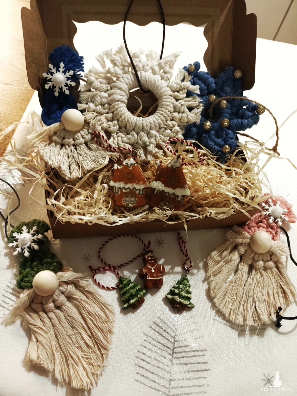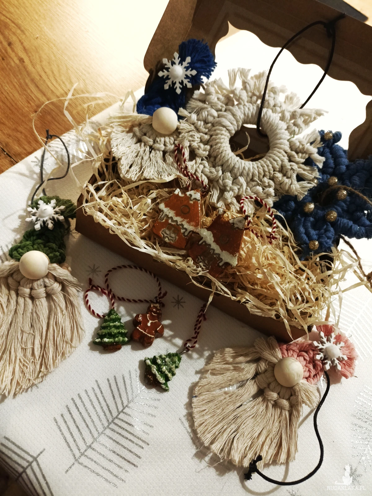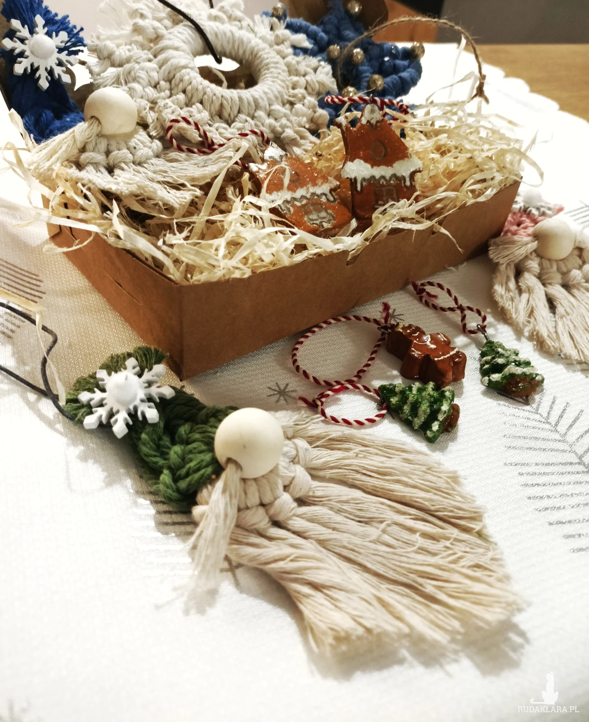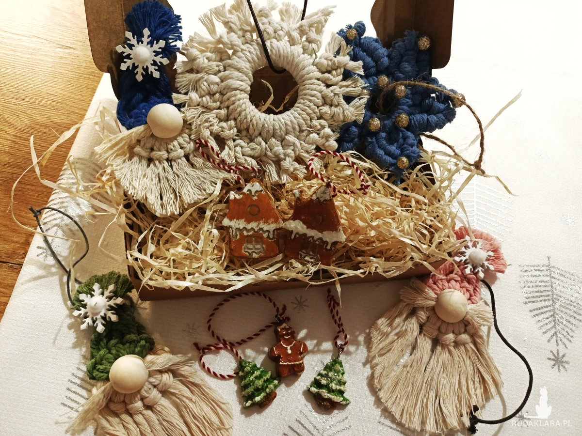 ozdoby choinkowe handmade • zestaw ozdób świątecznych • dekoracje świąteczne ręcznie robione • makrama śnieżynka • gnom ozdoba • ozdoby z gliny • pierniczki z gliny • ozdoby boho na choinkę • ekologiczne ozdoby świąteczne • rękodzieło świąteczne prezent