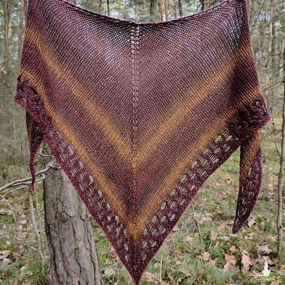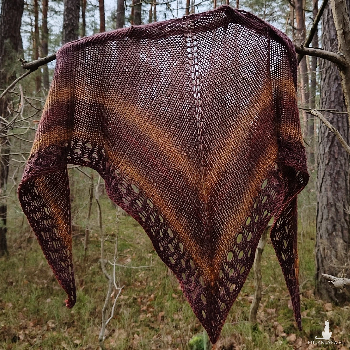 Klasyczna, średnich rozmiarów chusta wykonana ręcznie na drutach z najwyższej jakości urugwajskiej ręcznie farbowanej włóczki 100% wełna merino extrafine. Miękka, miła, wyjątkowo delikatna wełna, przypominająca w dotyku jedwab. Miłe dla oka kolory, kojarzące się z bałtyckim bursztynem. Wymiary: 172 cm. bok najdłuższy, 72 cm. wys. trójkąta -. Polecam dla najdelikatniejszej skóry. Pranie wyłącznie ręczne w delikatnych środkach bez preparatów zmiękczających.