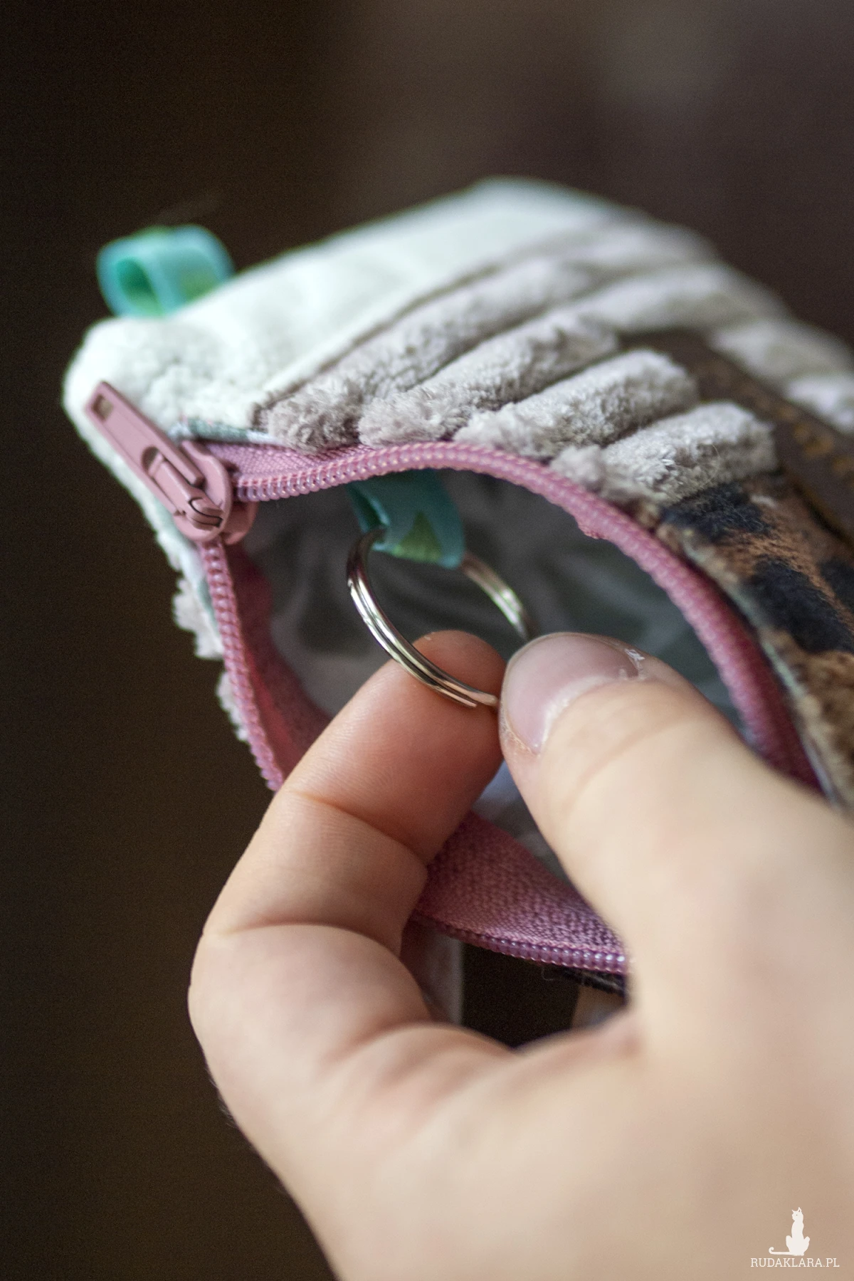 W środku posiada kółeczko do przypięcia kluczy, dzięki czemu może służyć jako etui na nie.