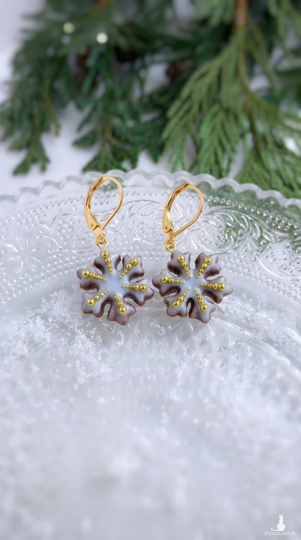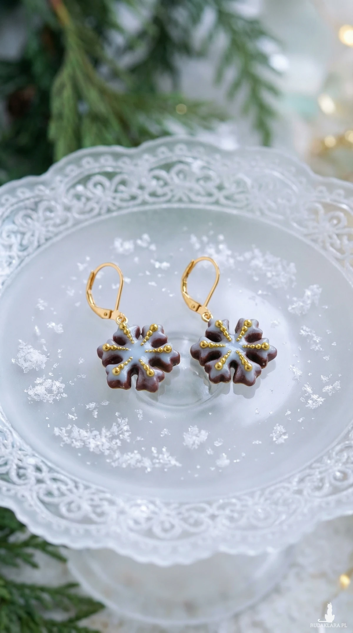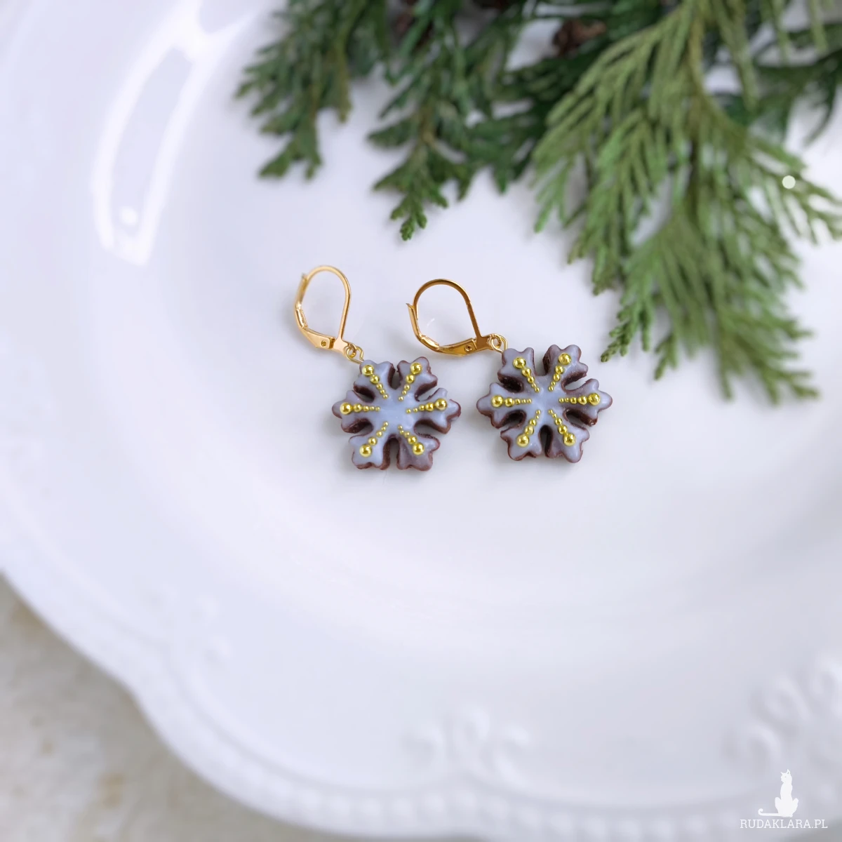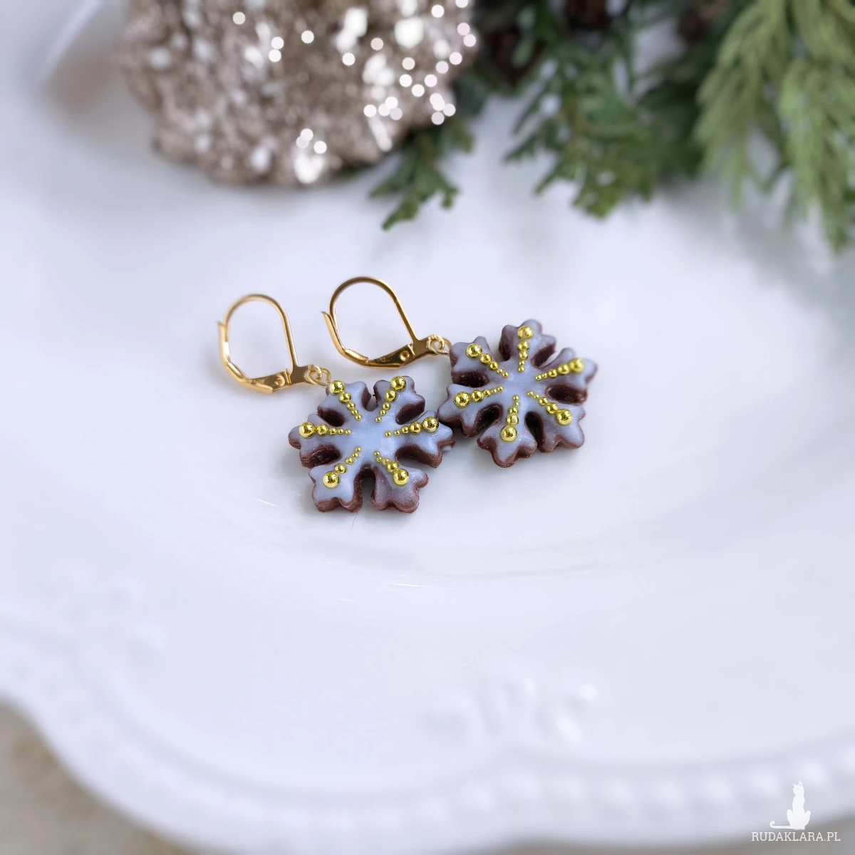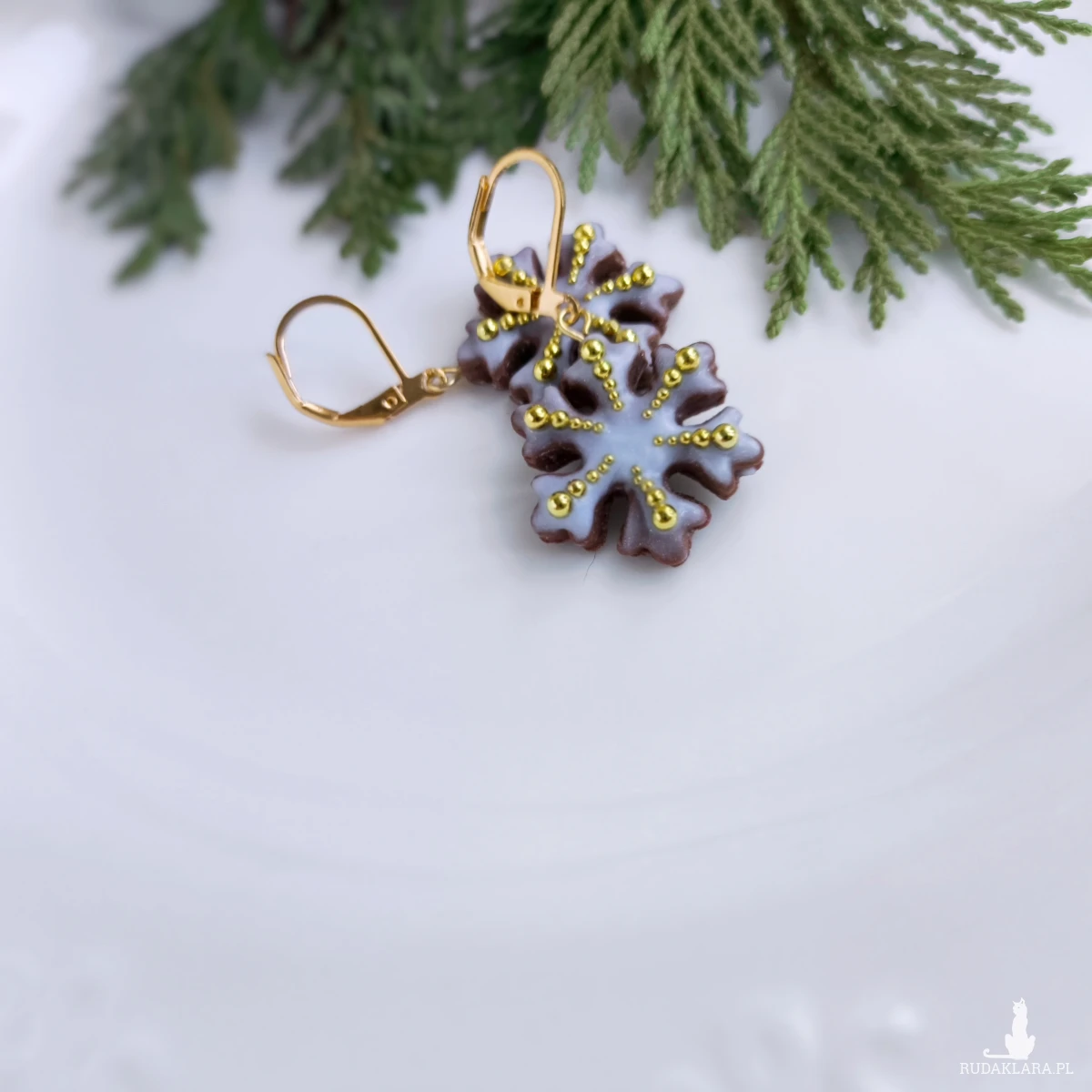 Urocze kolczyki pierniczki w kształcie śnieżynek