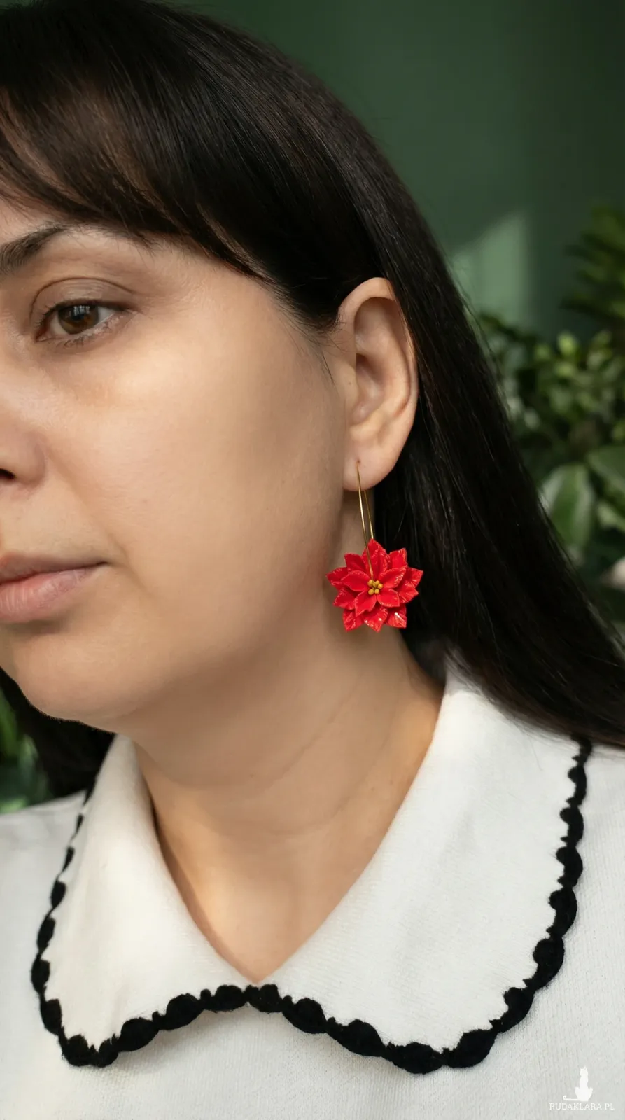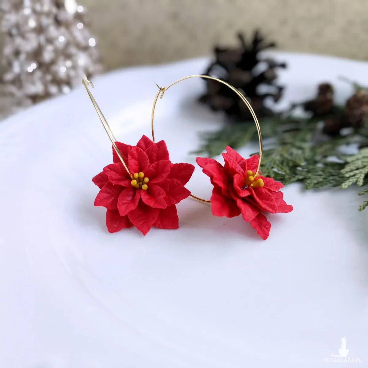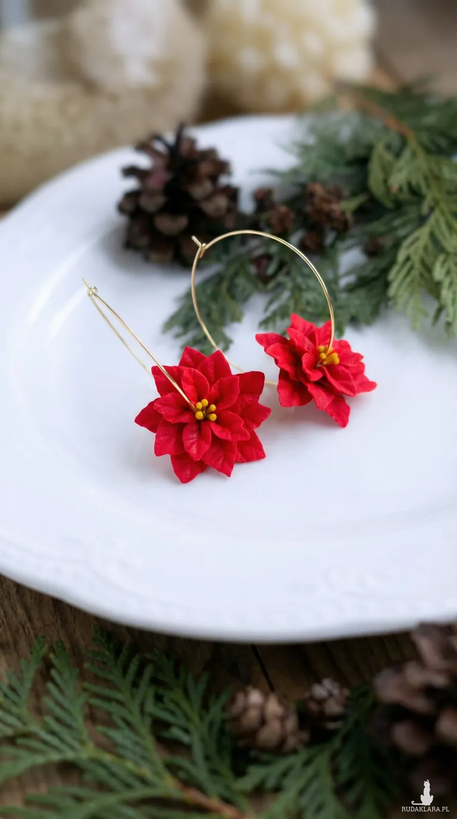 Eleganckie i efektowne kolczyki z kwiatami poisencji.