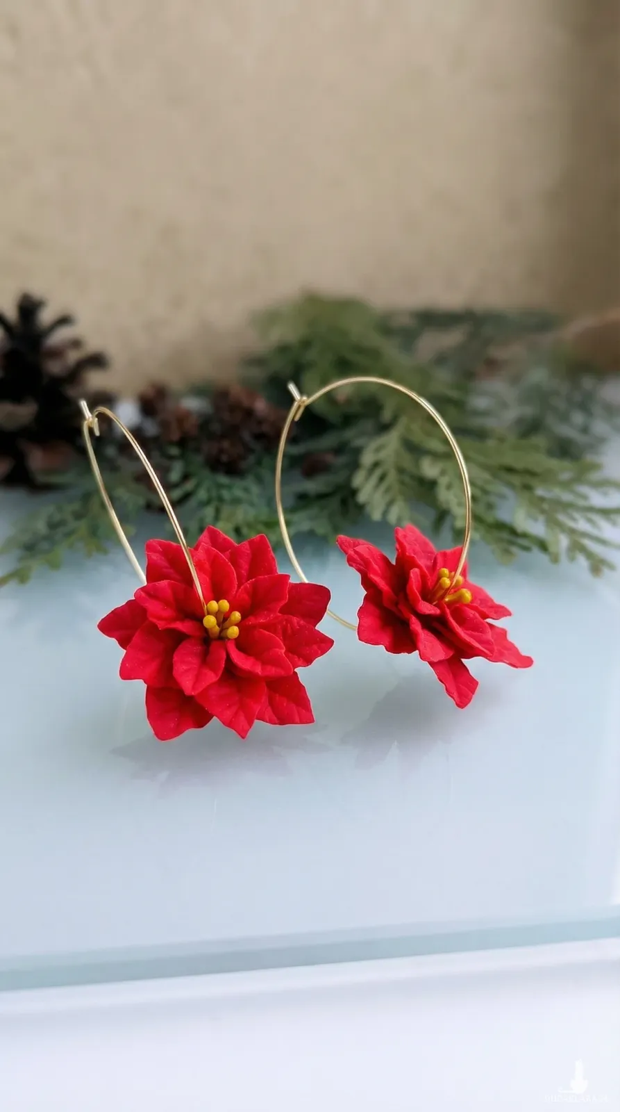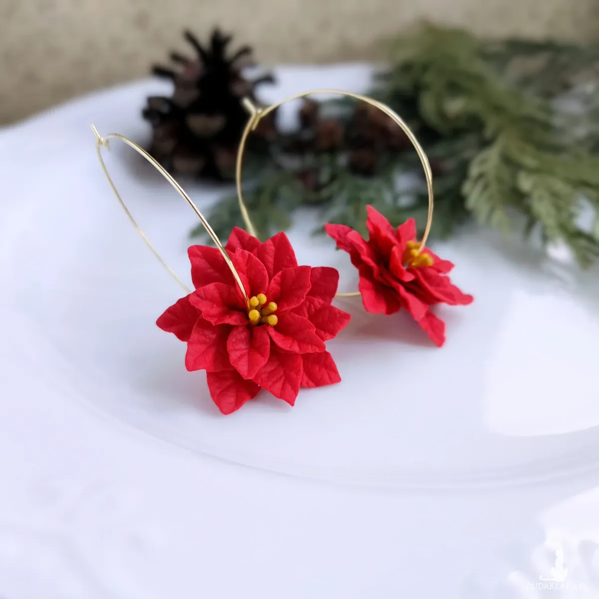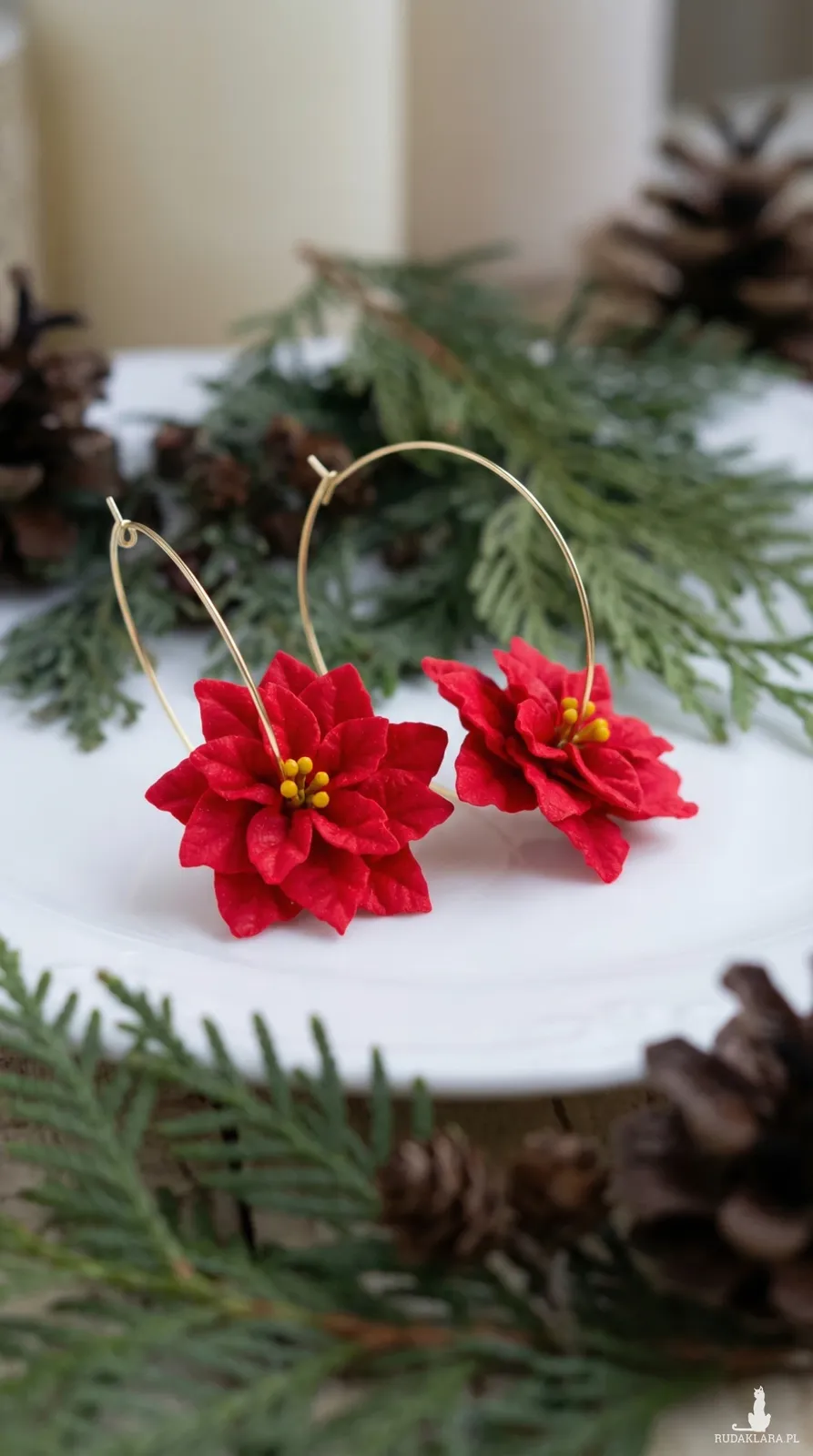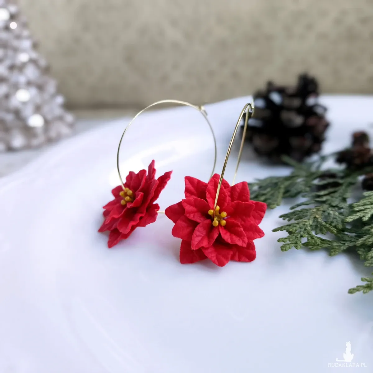 Eleganckie i efektowne kolczyki z kwiatami poisencji.