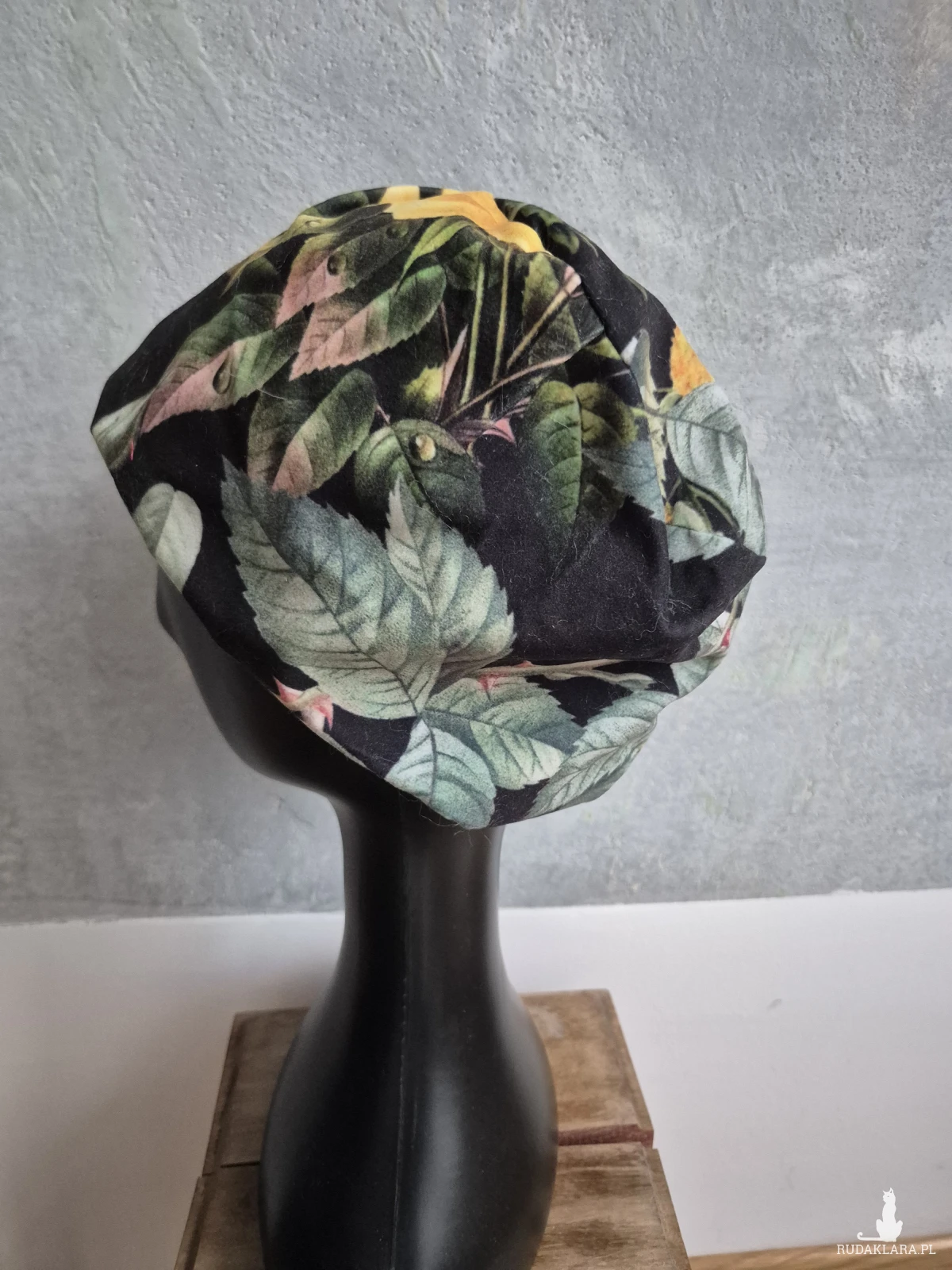Czapka toczek kolorowy uniwersalny na podszewce uwaga poezja: gdyby myślenie zależało od wielkości głowy najmądrzejsze byłyby krowy,box w1