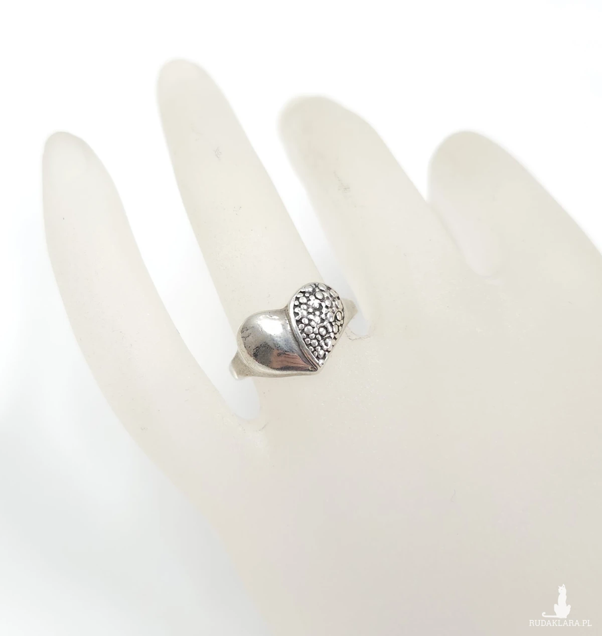 Śliczny, oryginalny pierścionek, na froncie urocze serduszko.