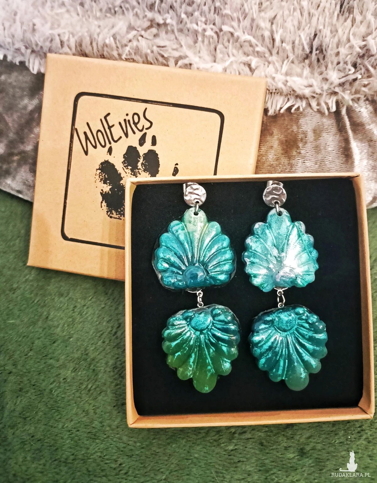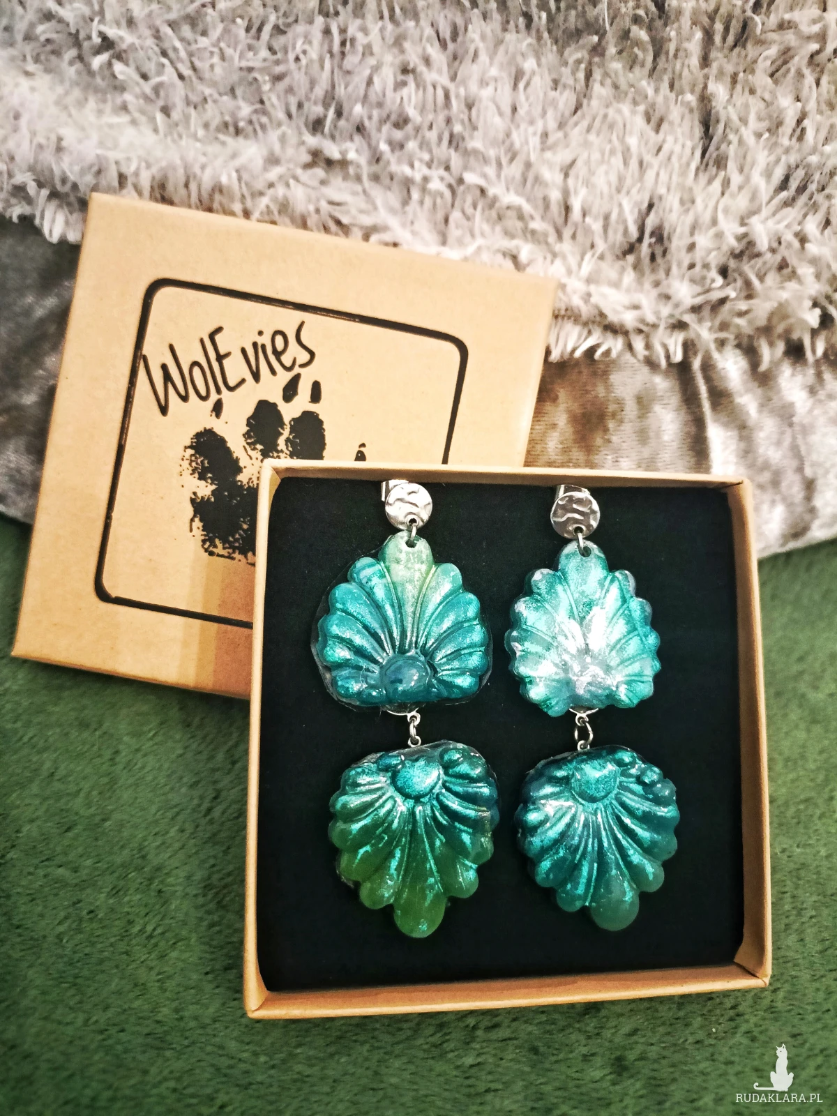 Wykonane w odcieniu perłowej butelkowej zieleni, delikatnie mienią się w świetle, a zabezpieczenie wysokiej jakości żywicą Resin Pro zapewnia piękny połysk i trwałość.