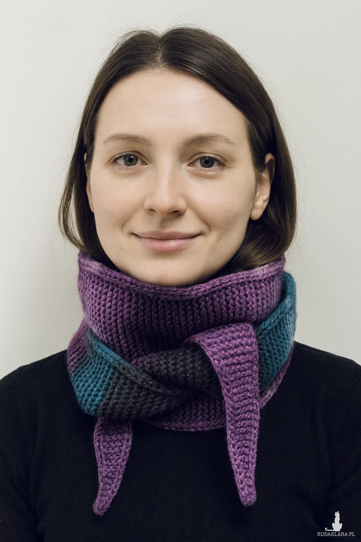 Włóczka akrylowa komfortowo otula szyję, nie gryząc i nie drażniąc skóry.