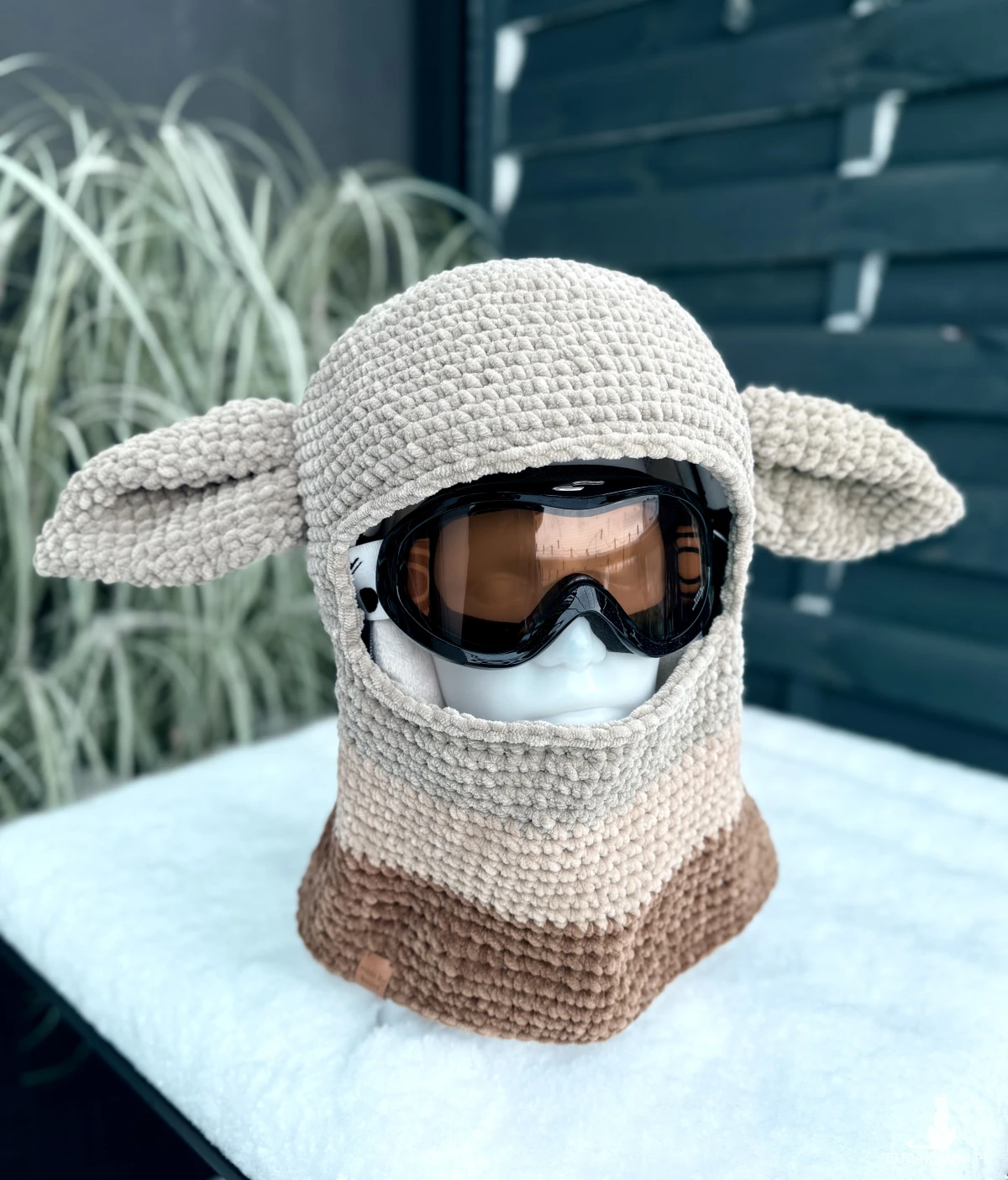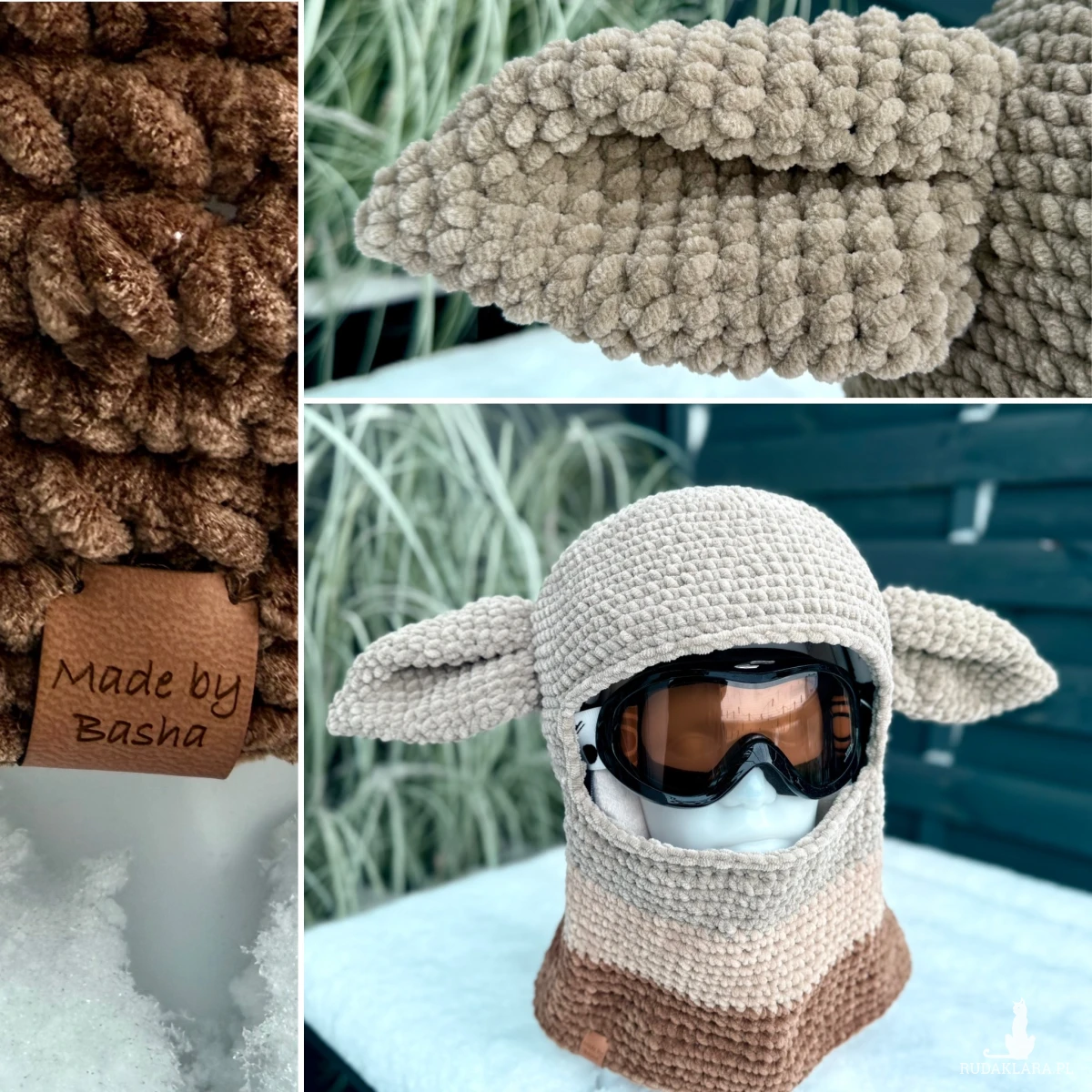 Kominiarka na kask narciarski Baby Yoda ręcznie robiona na szydełku