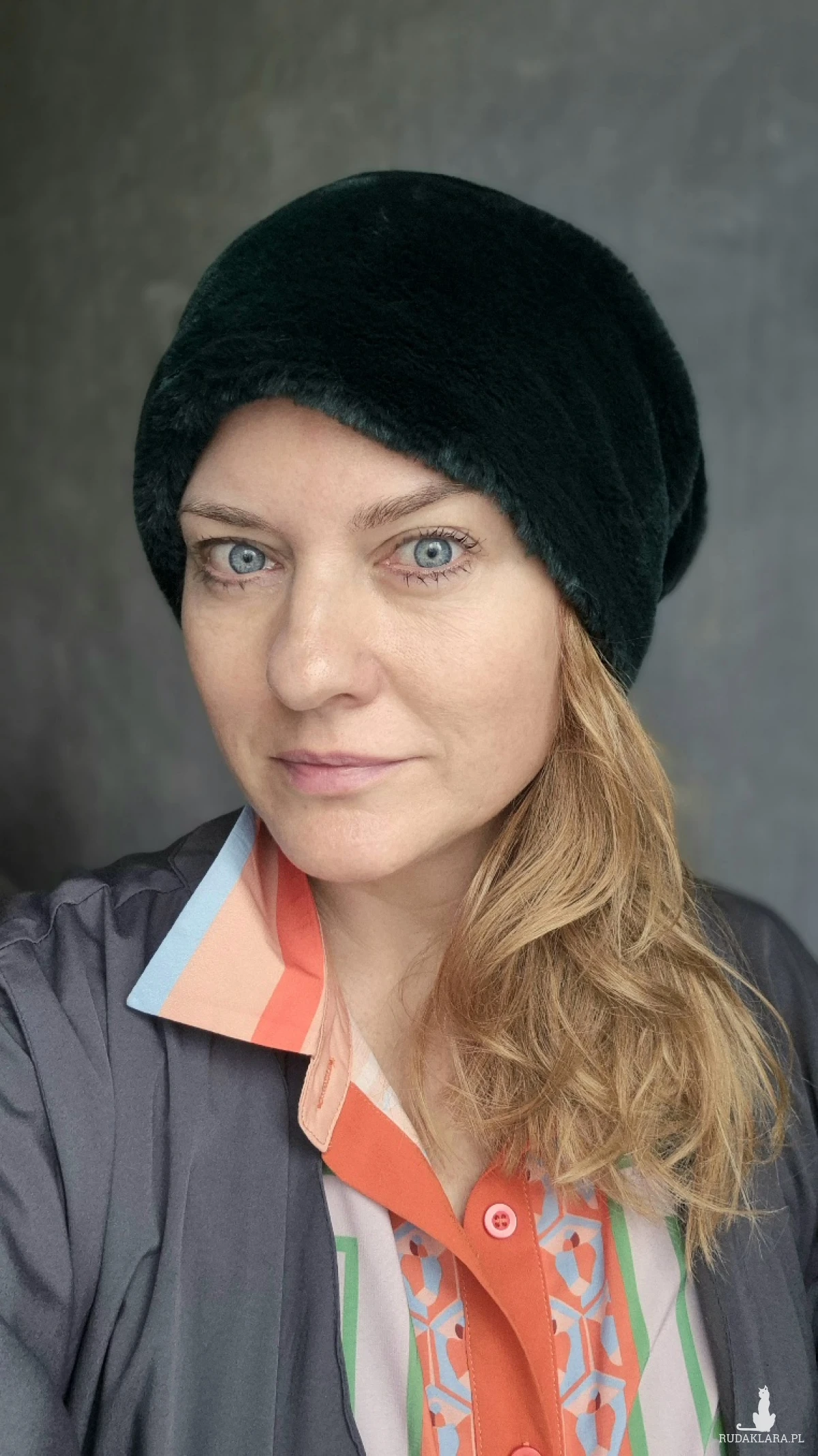 Futrzana  sztuczne futro ciemna zieleń czapka