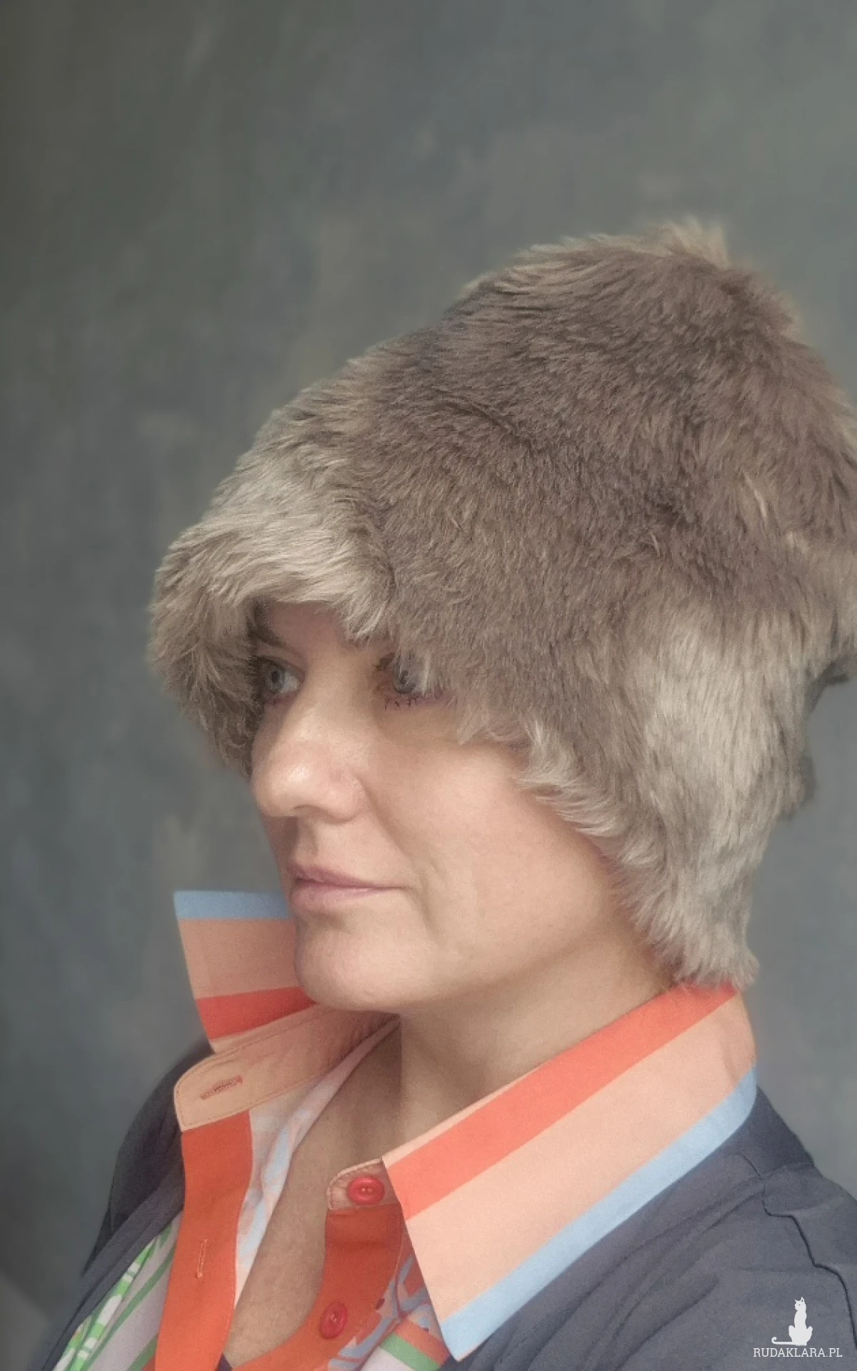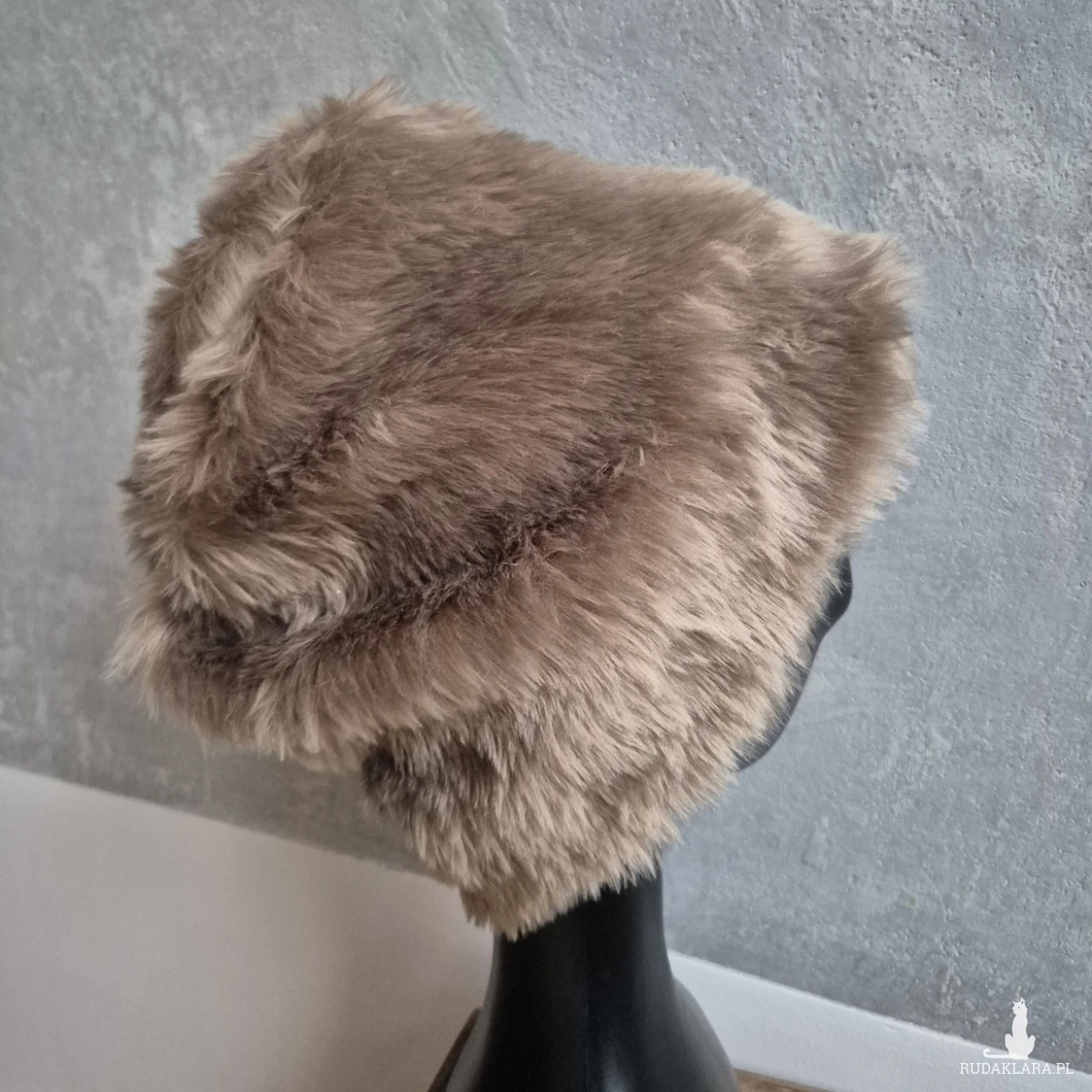 Futrzana czapka brązowa płowa Smerfetka na podszewce rozmiar uniwersalny bardzo ciepła, box a1