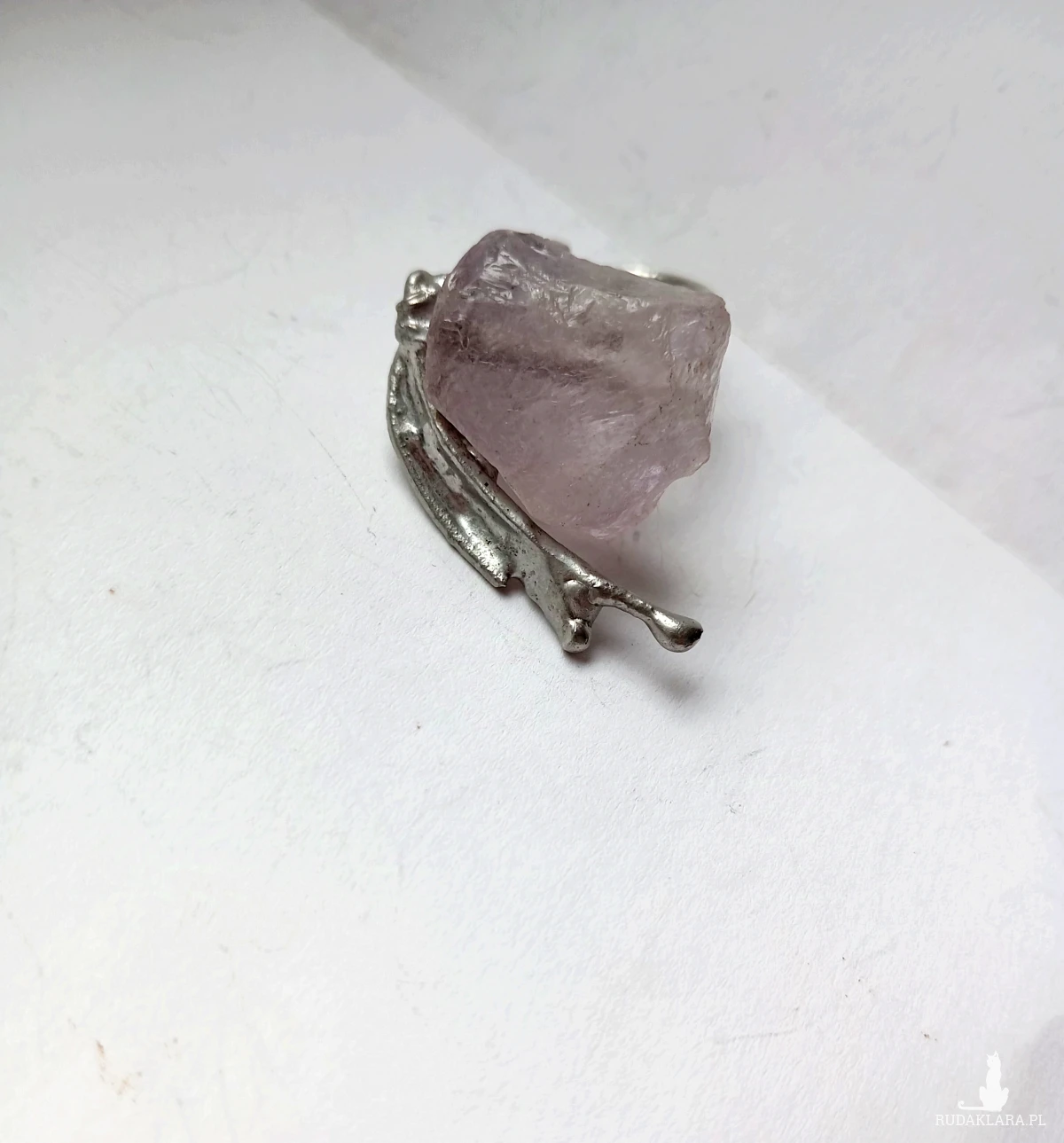Pierścionek z fioletowym jadeitem, regulowany, pojedynczy