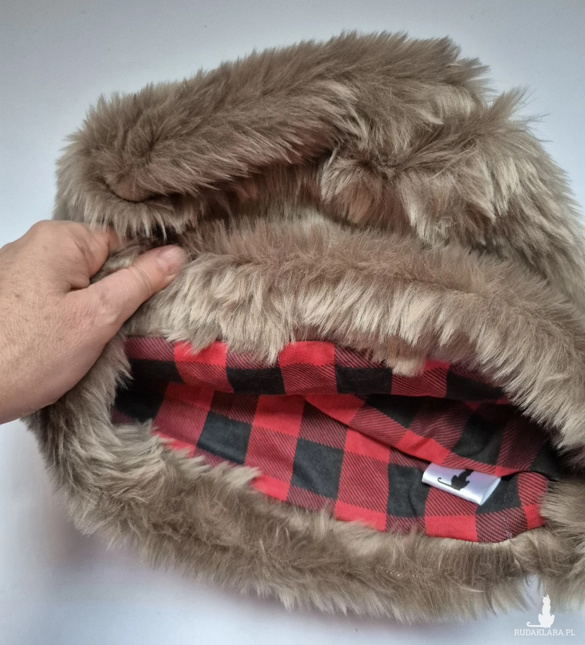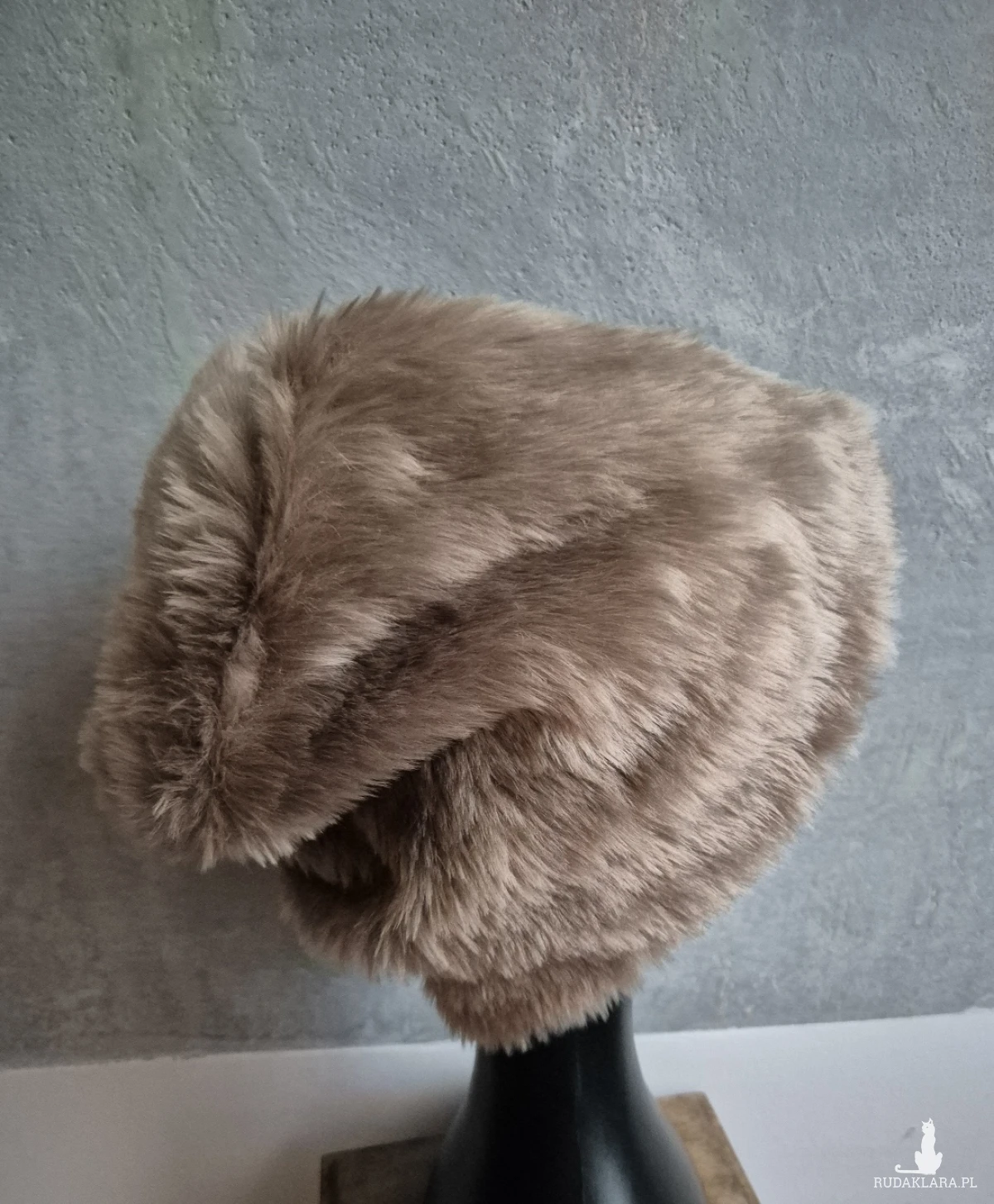 Futrzana czapka brązowa płowa Smerfetka na podszewce rozmiar uniwersalny m/L bardzo ciepła,box 01