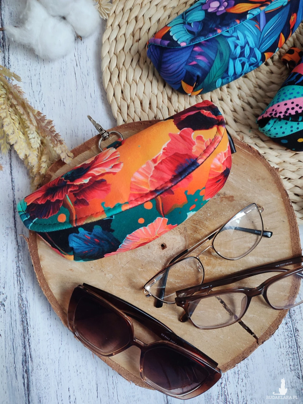 Etui na okulary – przeciwsłoneczne lub do czytania. Zmieścisz tam też chusteczkę do czyszczenia.