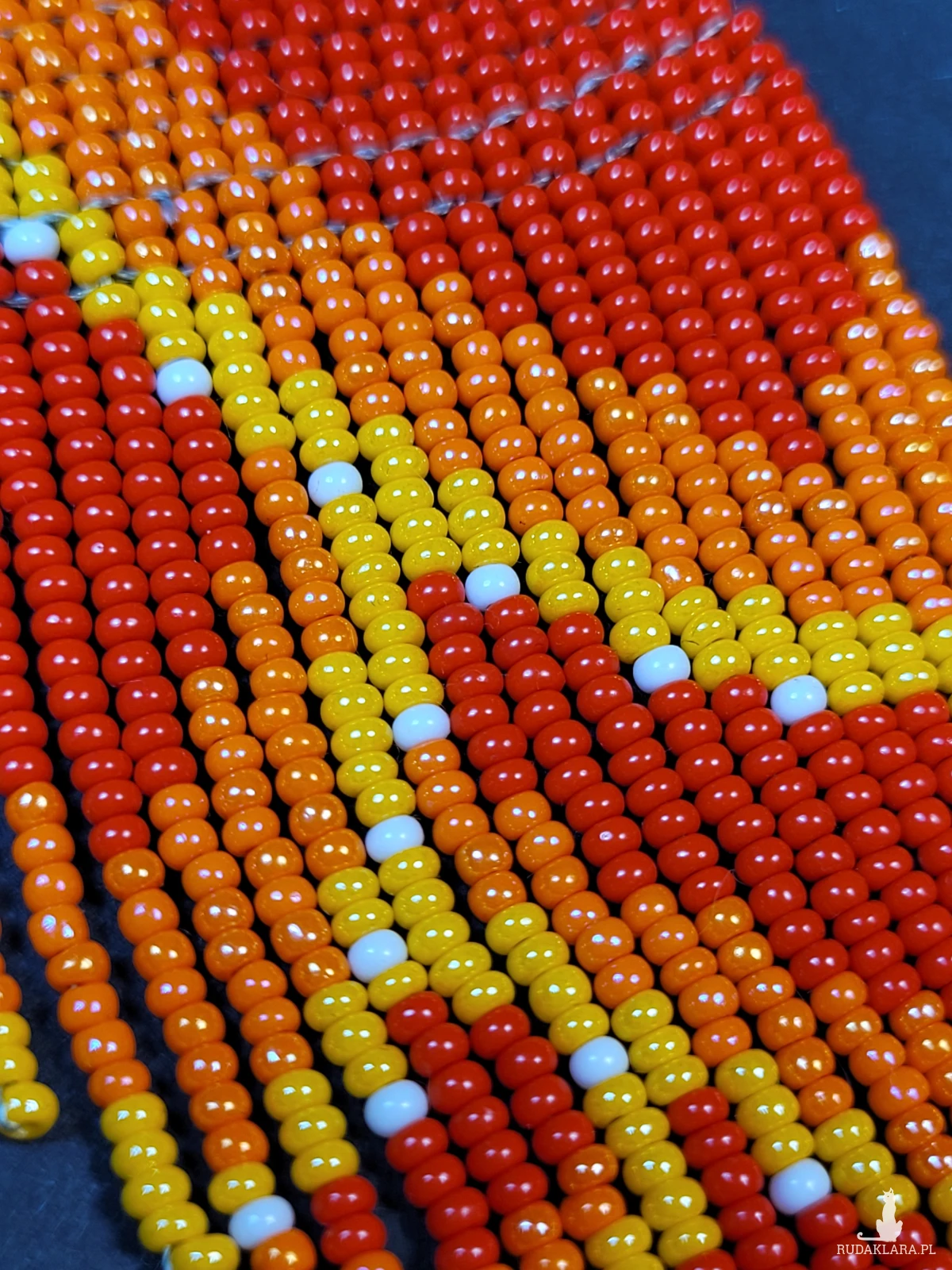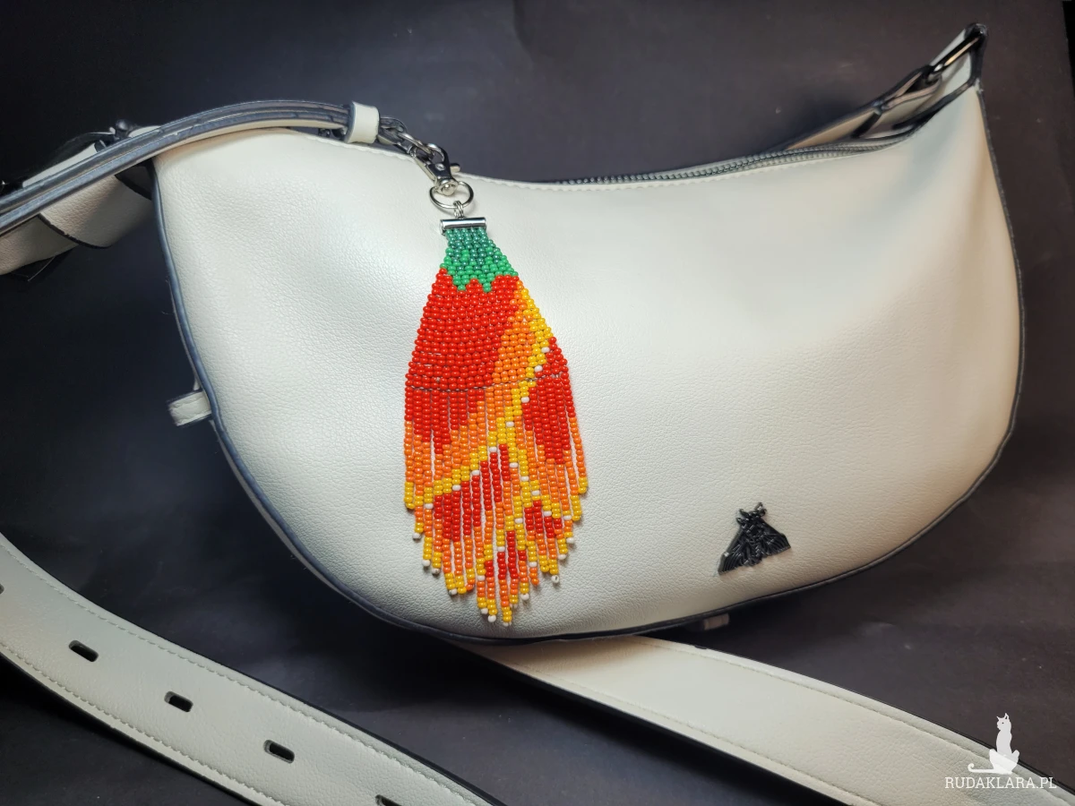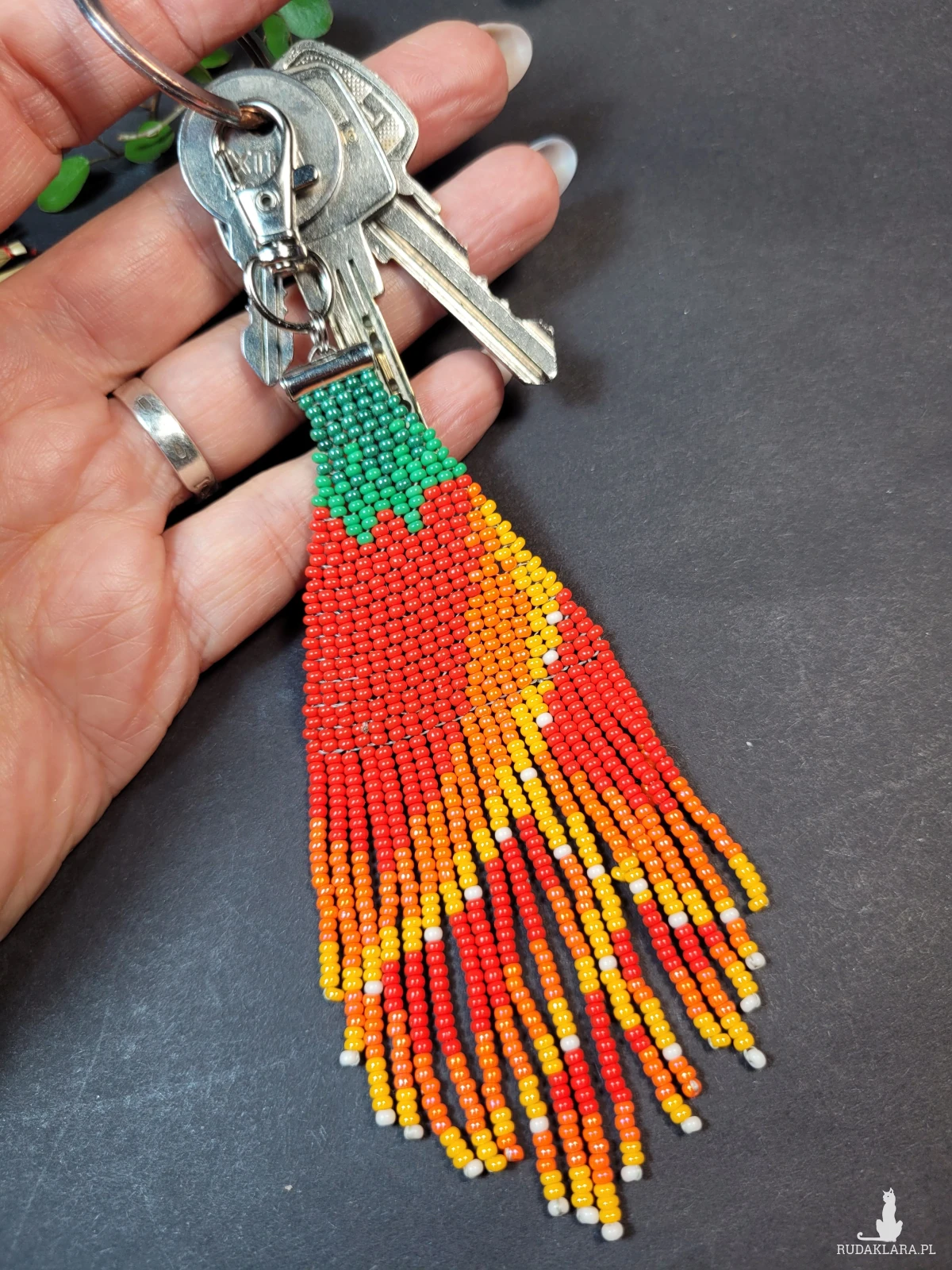 Ręcznie wykonana brelok - zawieszka "Czerwony Kwiat" chwost z drobnych czeskich koralików Preciosa. Intensywna kolorystyka różnych odcieni czerwonego, pomarańczowego, żółtego.