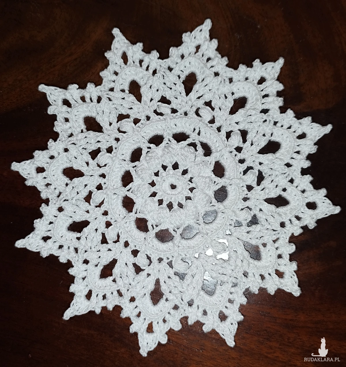 Eleganckie, ażurowe gwiazdki wykonane ręcznie na szydełku z wysokiej jakości białego kordonka. Misterny wzór nadaje im delikatności.