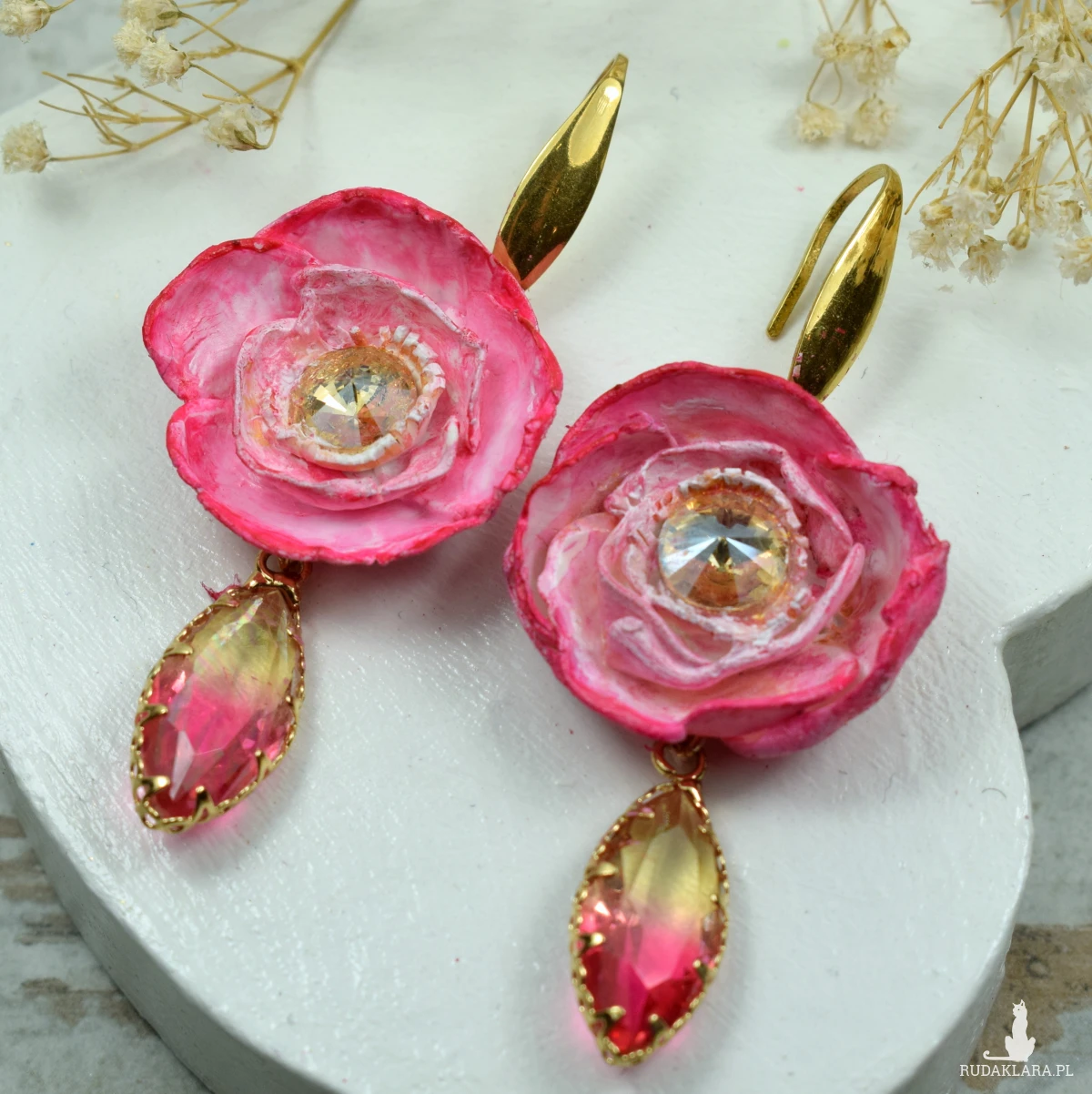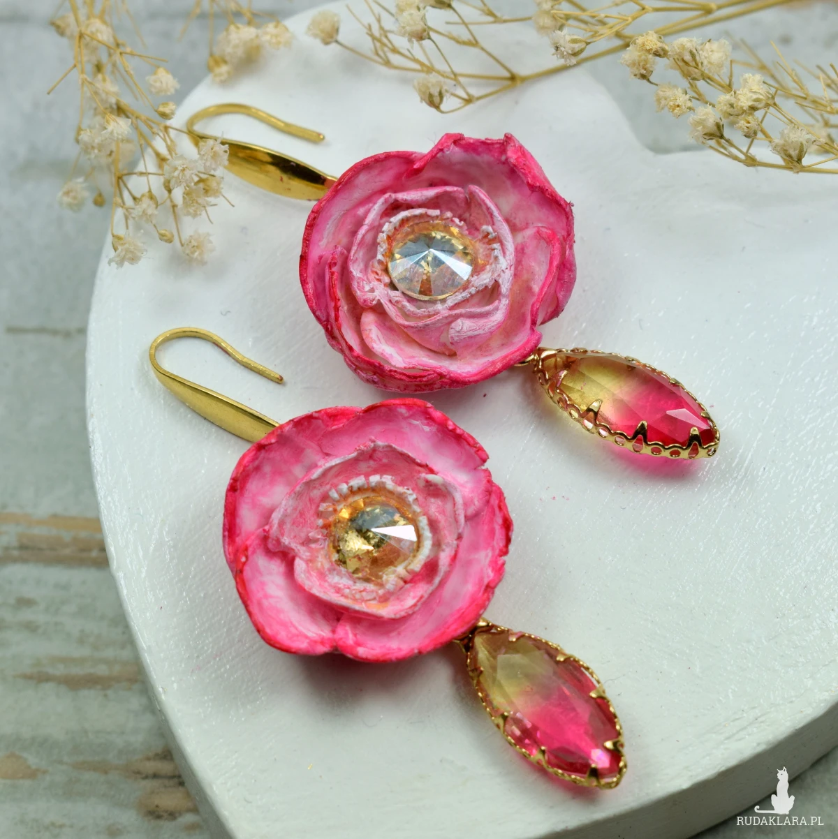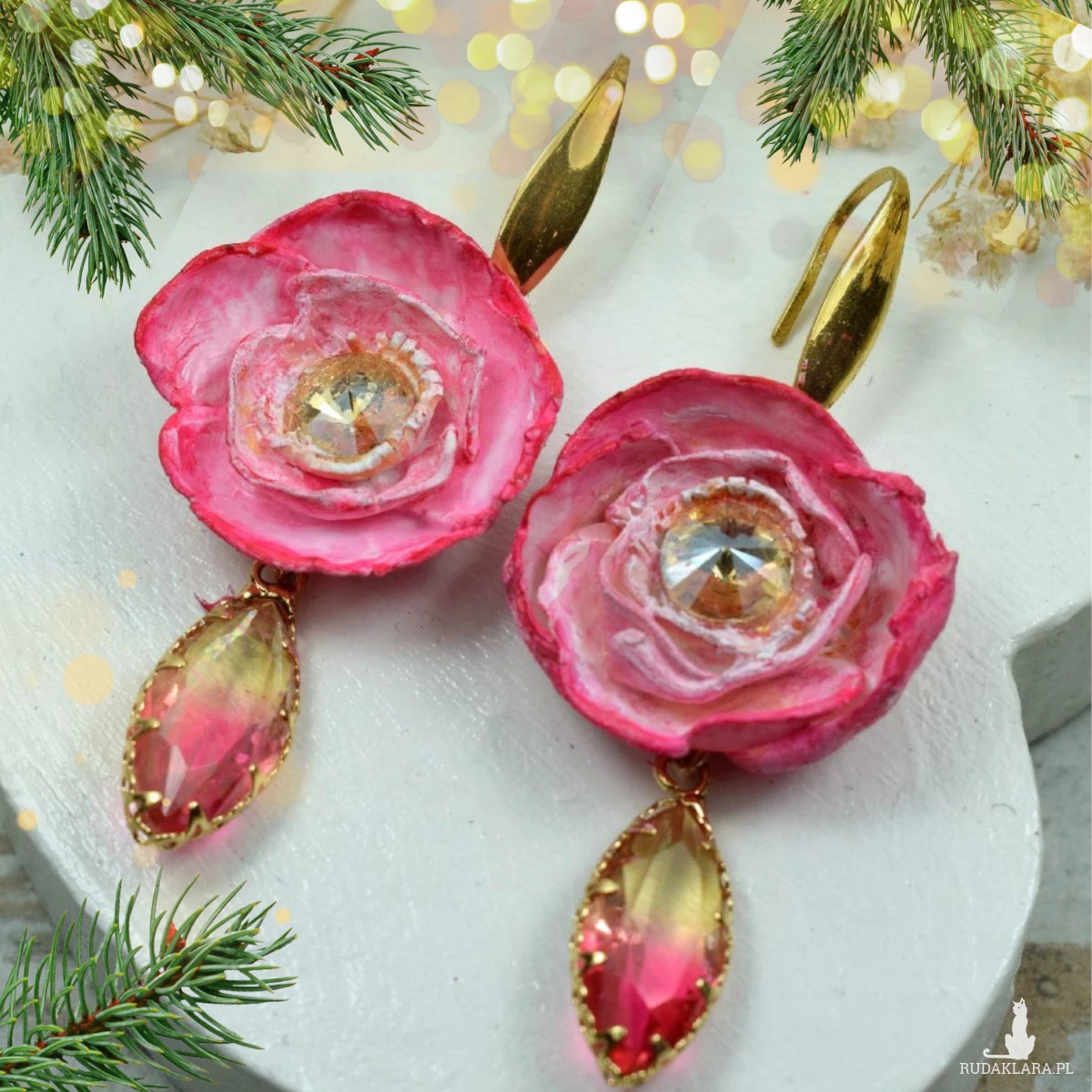 Delikatne i eleganckie kolczyki w kształcie kwiatów, ręcznie wykonane z wysokiej jakości glinki polimerowej.