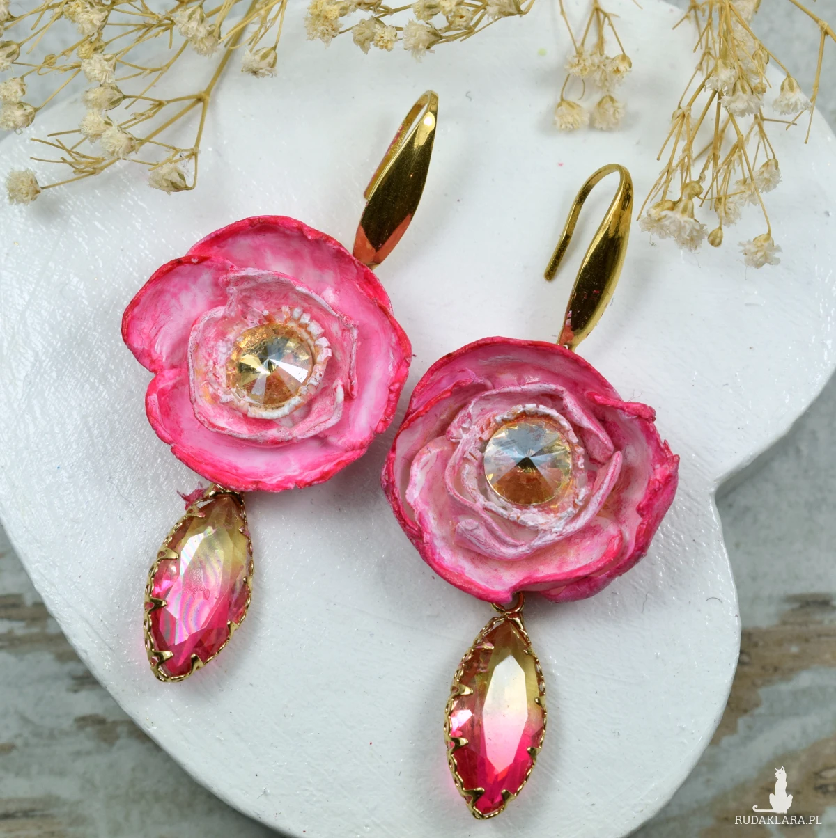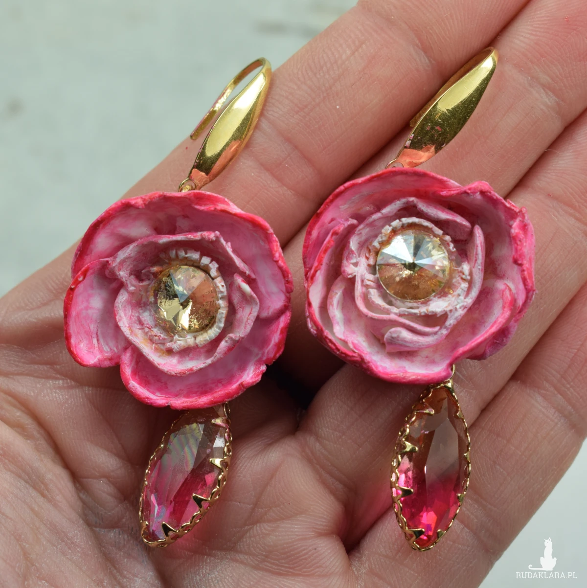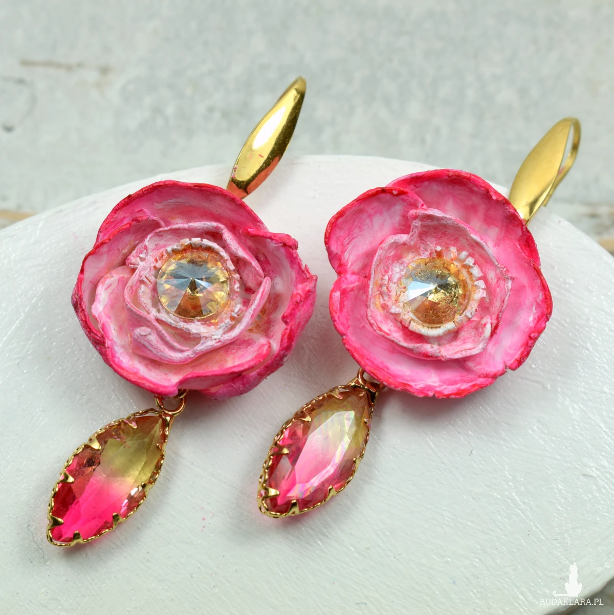 Delikatne i eleganckie kolczyki w kształcie kwiatów, ręcznie wykonane z wysokiej jakości glinki polimerowej.