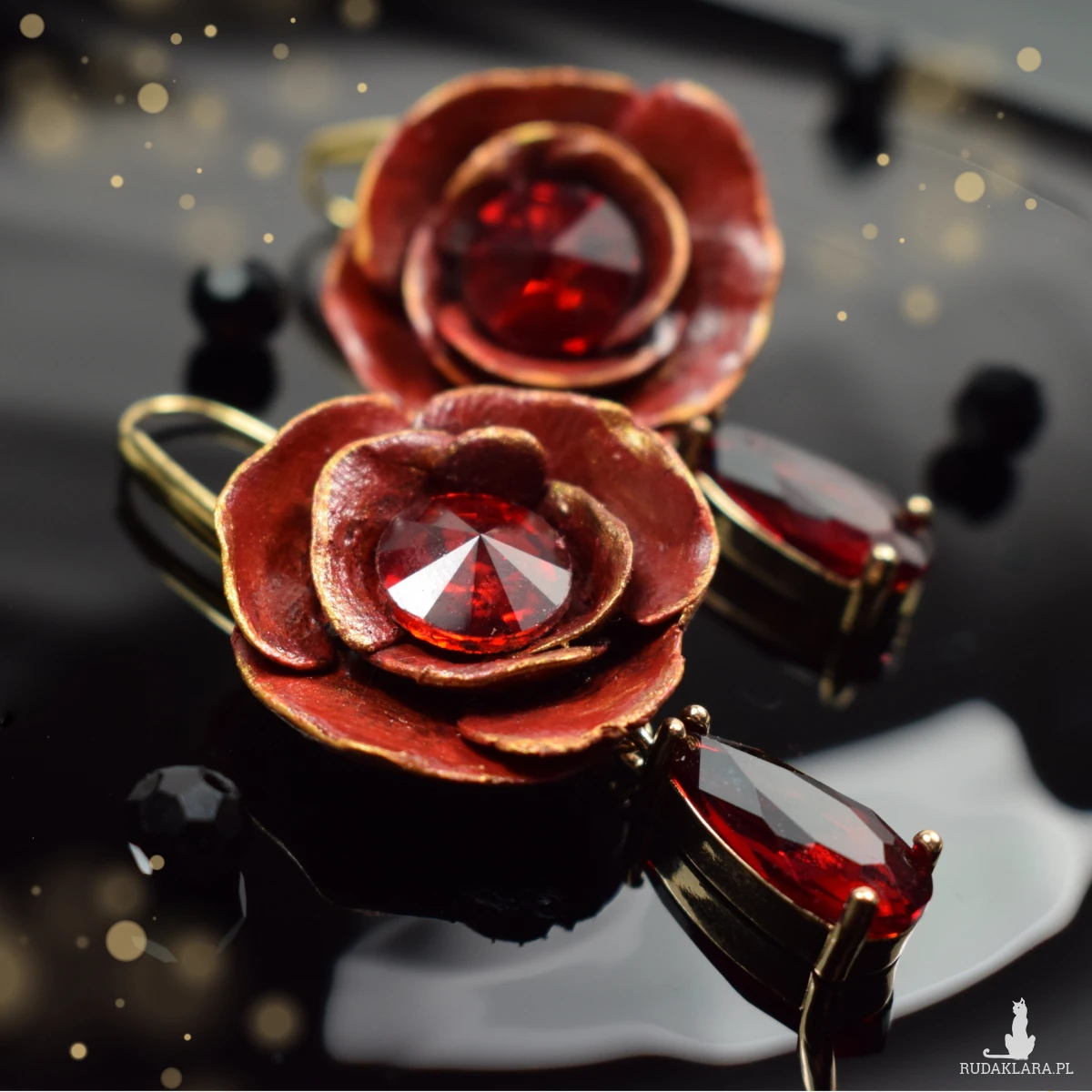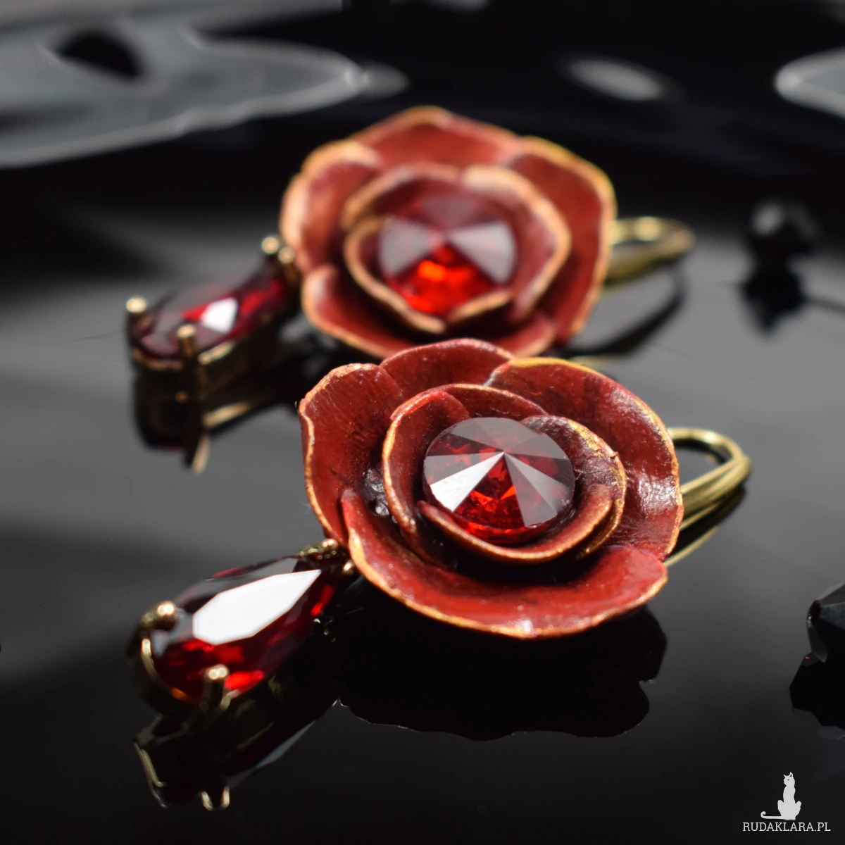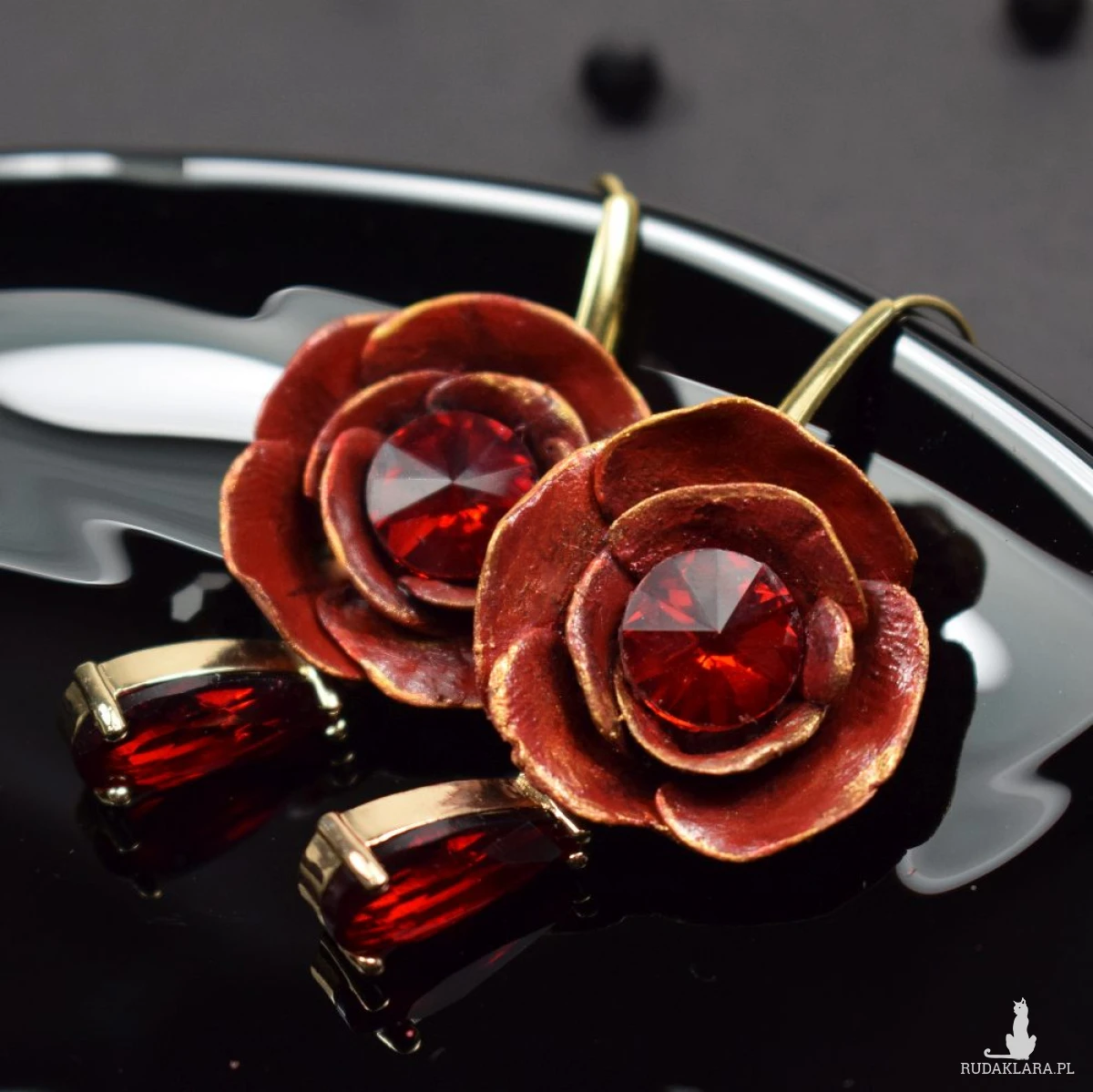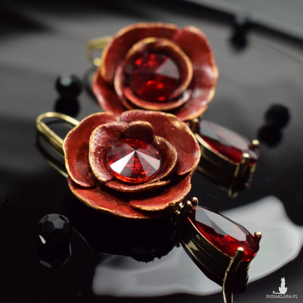 Eleganckie i wyjątkowe bordowe kolczyki kwiaty, ręcznie wykonane z najwyższej jakości glinki polimerowej.