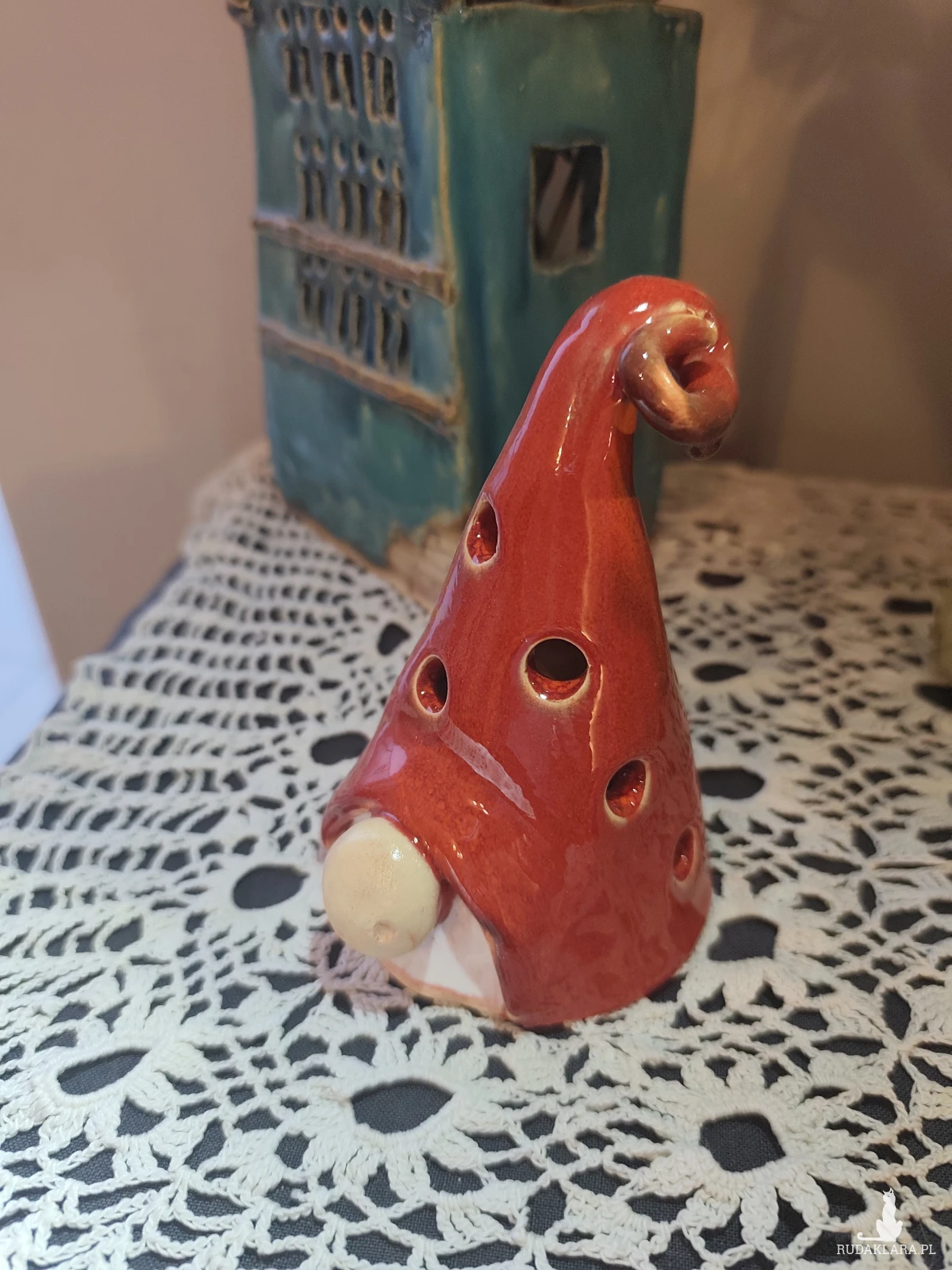 Ręcznie ulepiony, szkliwiony i dwukrotnie wypalany w piecu ceramicznym na wysoką temperaturę Wielkość około 12 cm. Polecam na prezent lub dodatek do domu.