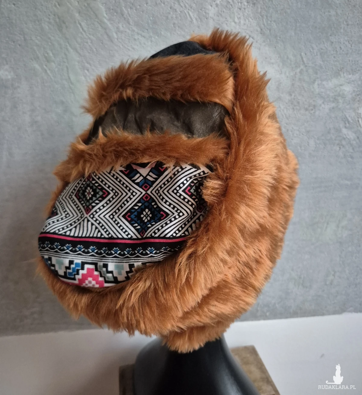Futrzana czapka ruda   gora folkowa na podszewce rozmiar uniwersalny Box F1