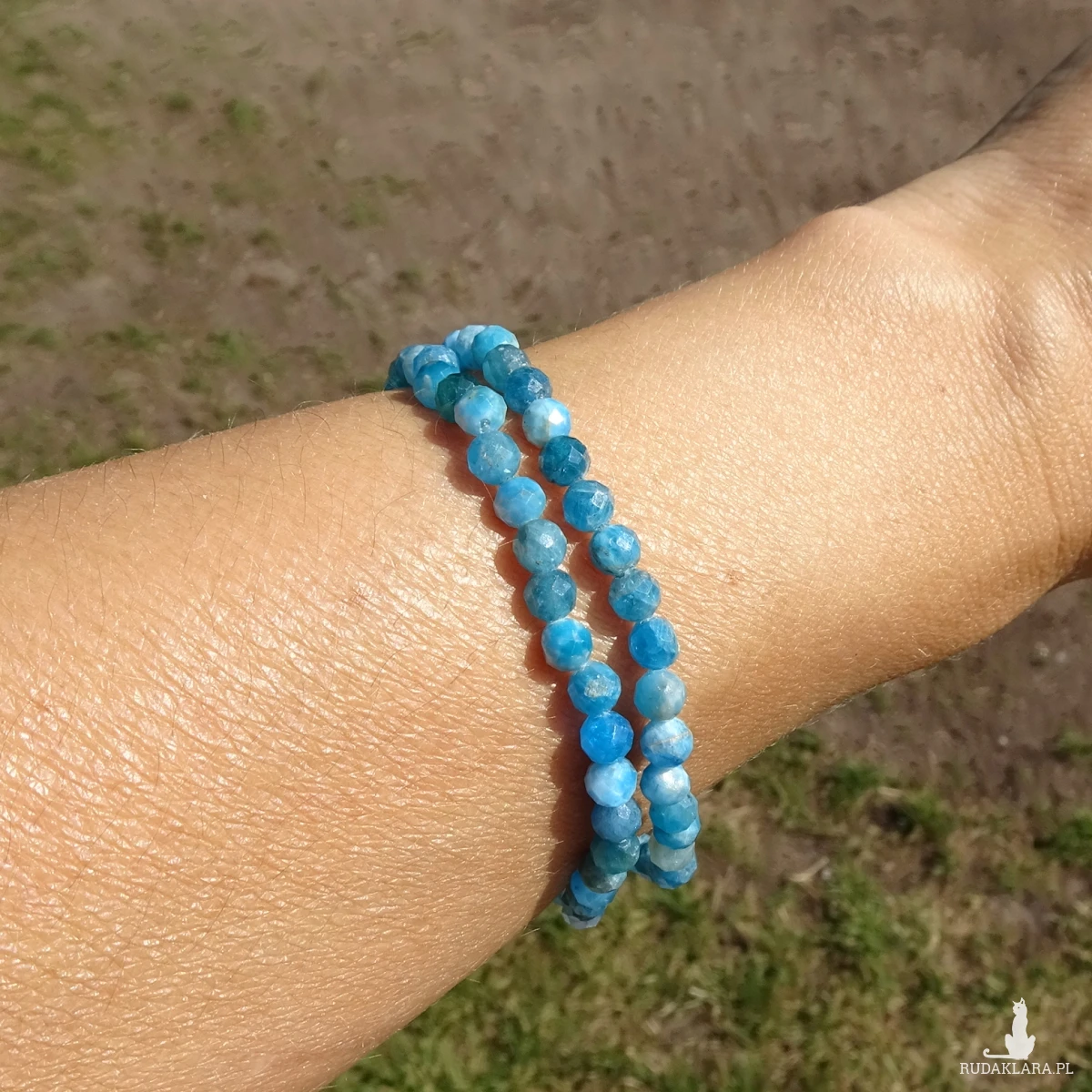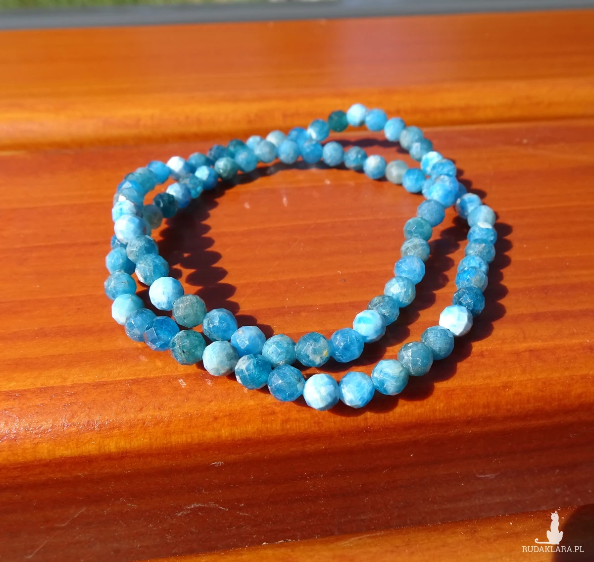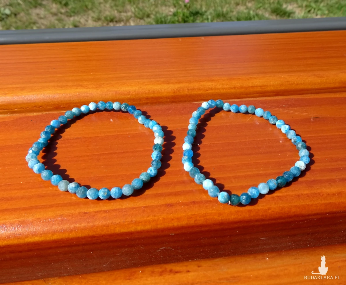 Bransoletka z apatytu na silikonowej gumce, kamienie fasetowane 6mm, Intensywny błękitny kolor