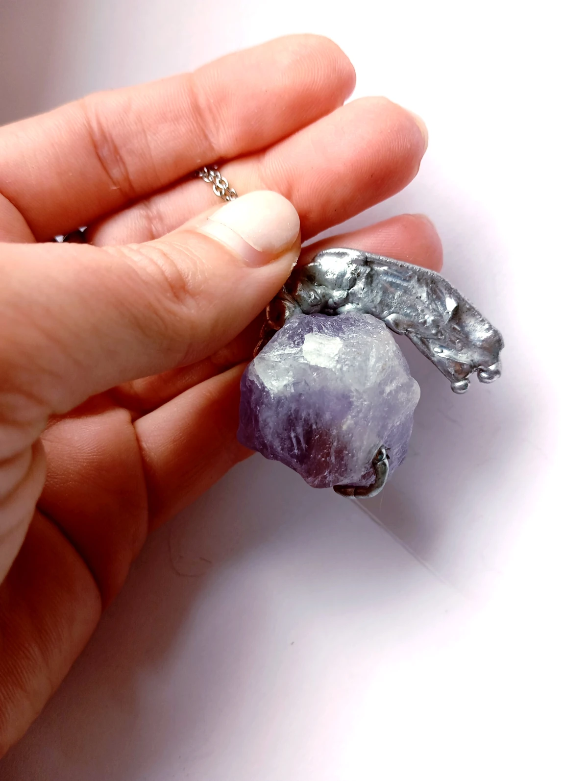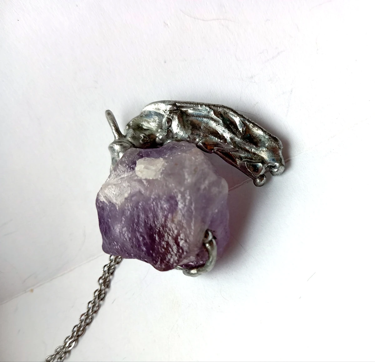 Naszyjnik z fioletowym jadeitem, pojedynczy