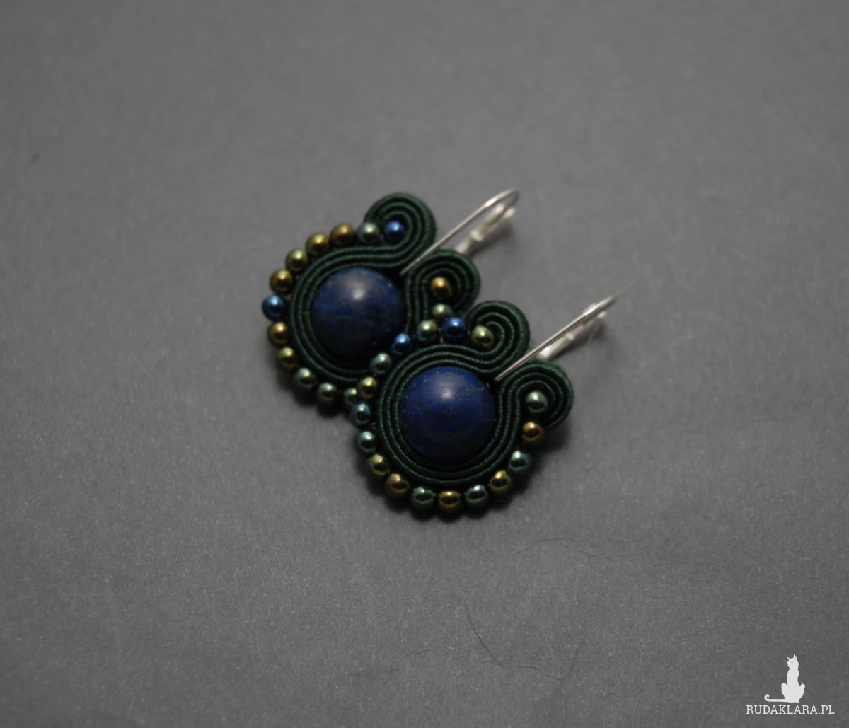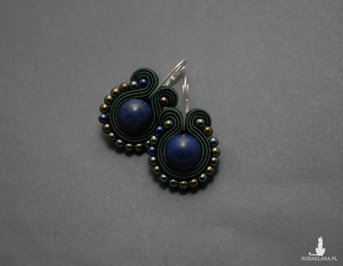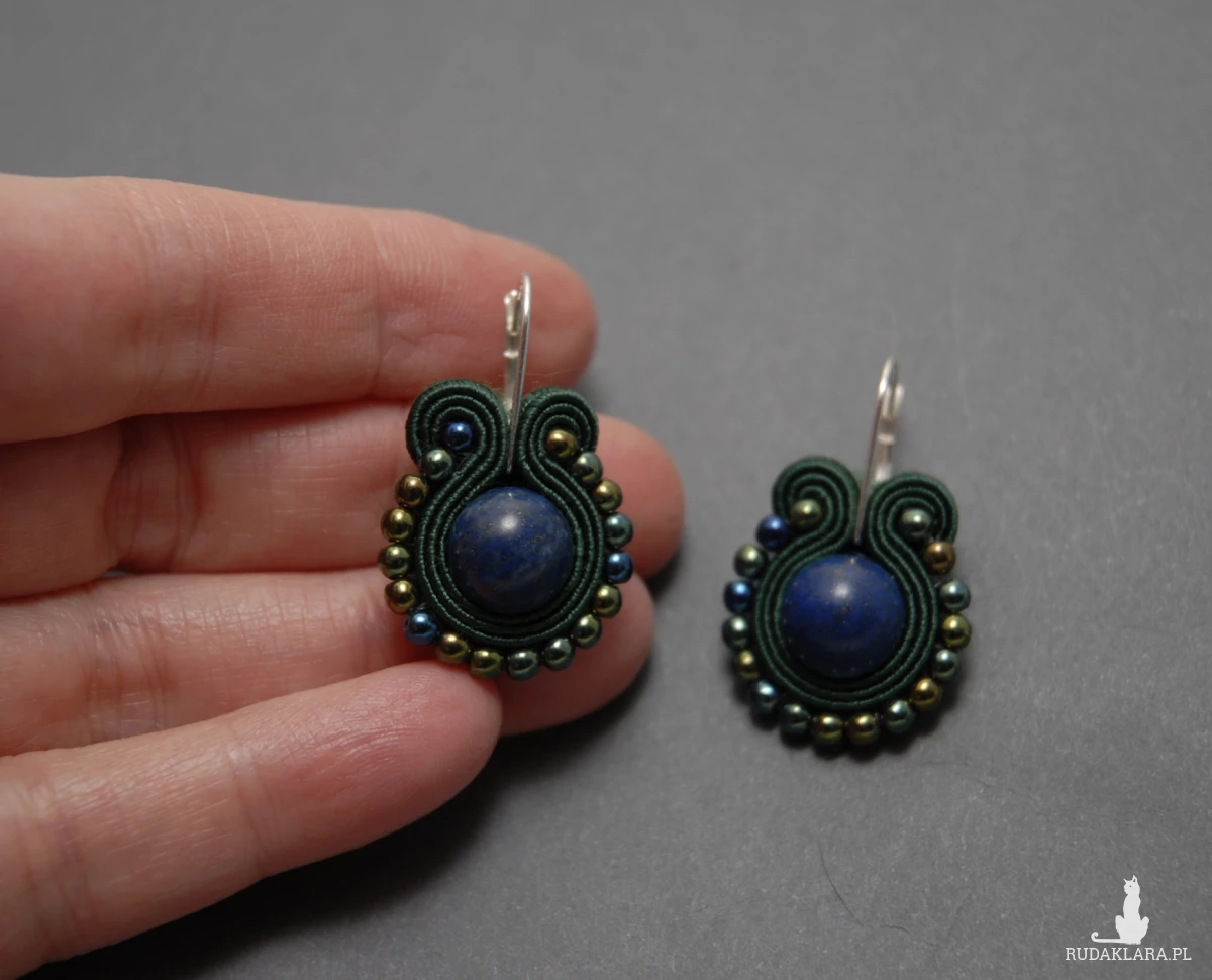 oferuję kolczyki zrobione techniką sutasz, ozdobione chryzokolą i drobnymi koralikami