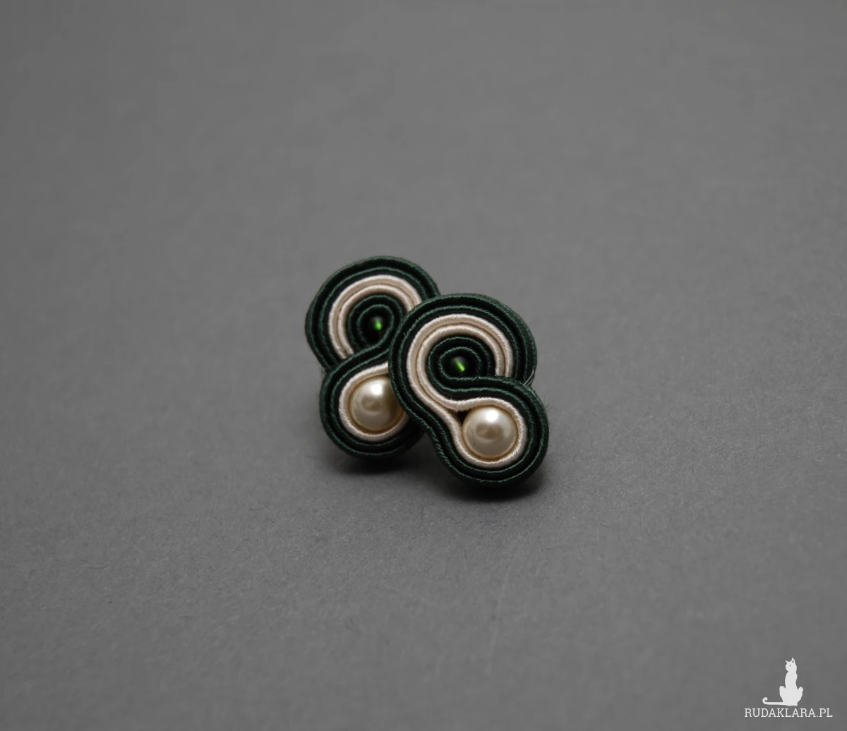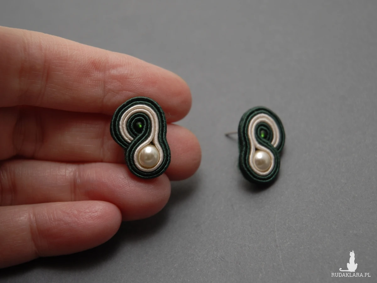 małe, kremowo-zielone kolczyki sutasz
