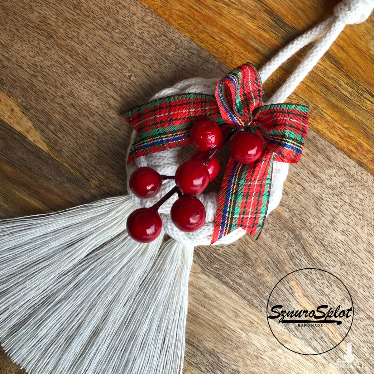 Prezentowany wzór ozdoby świątecznej ma długość 28 cm, kolor ecru.