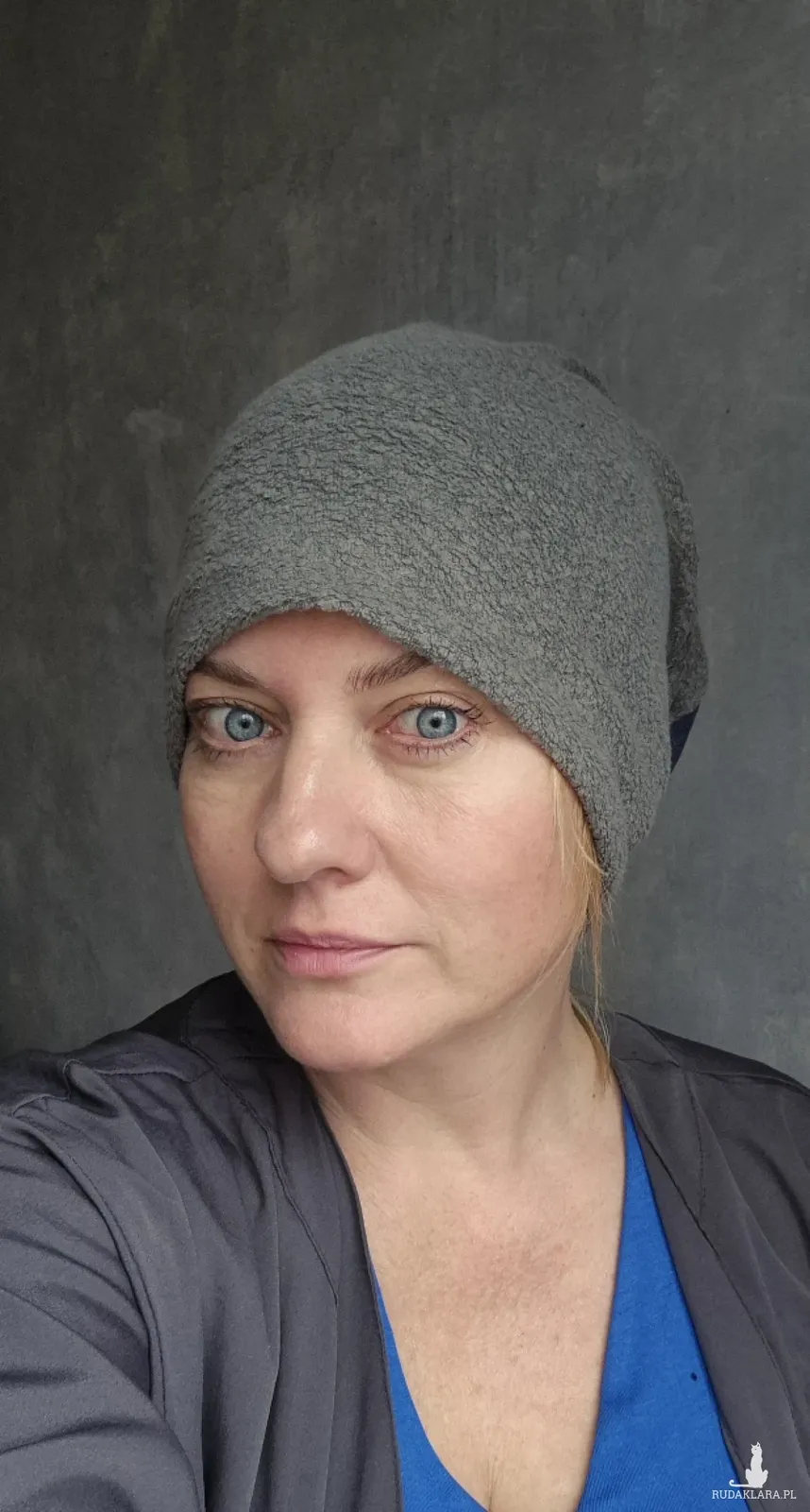 Czapka rozmiar uniwersalny dla M smerfetka dobra na codzienne noszenie szara z kolorową górą polecam Box x1 pojedyncza sztuka