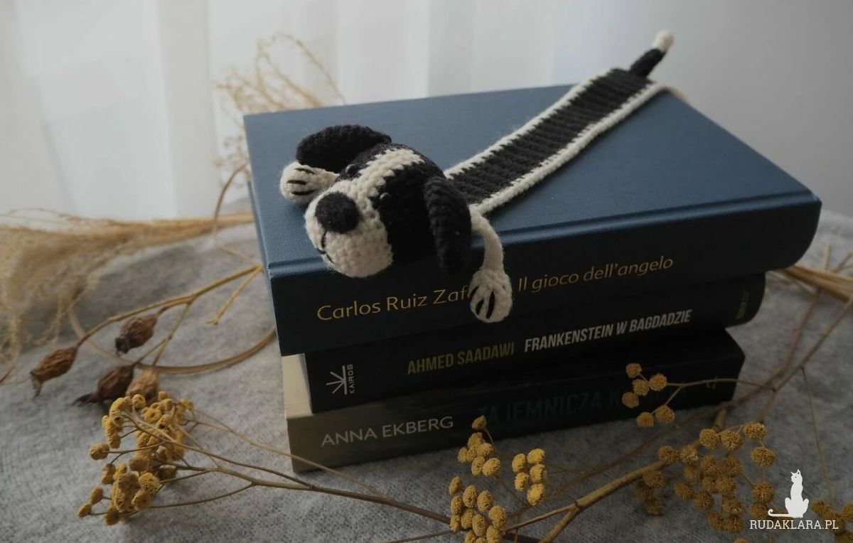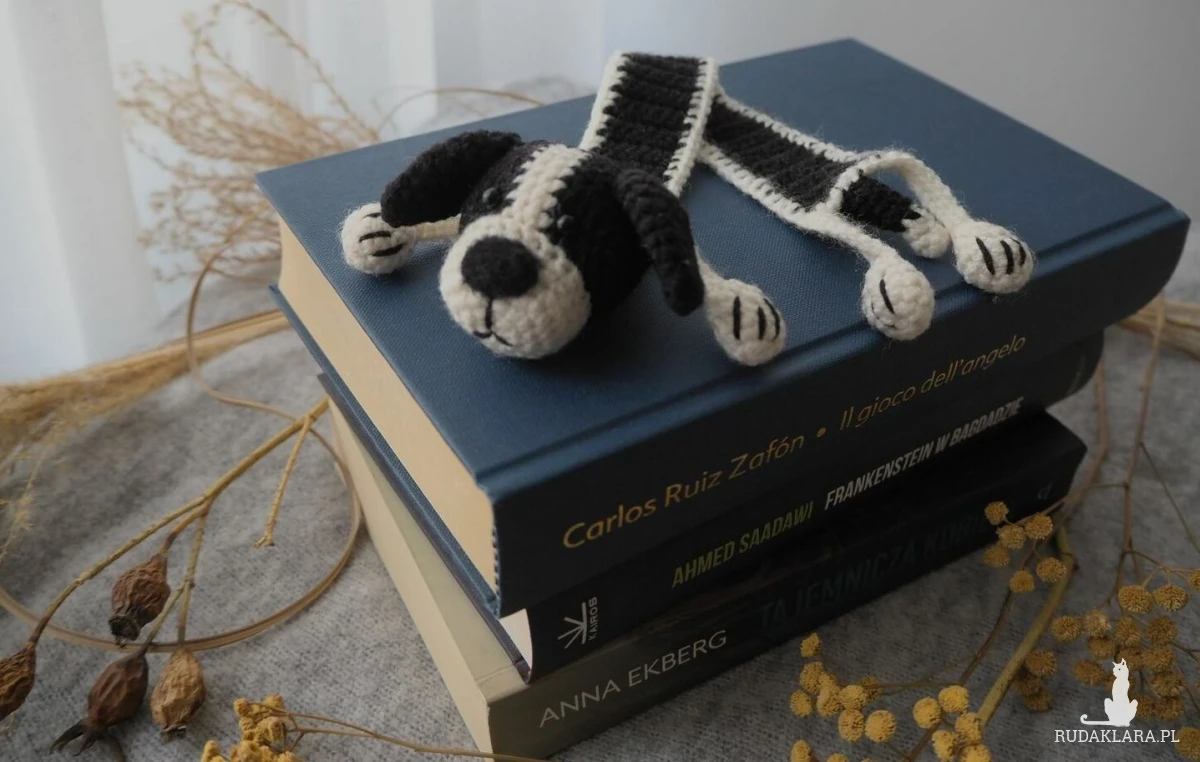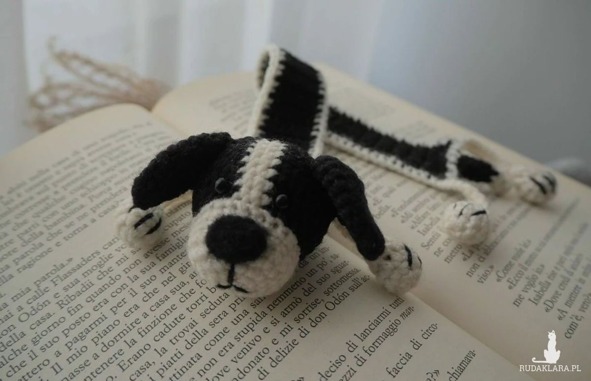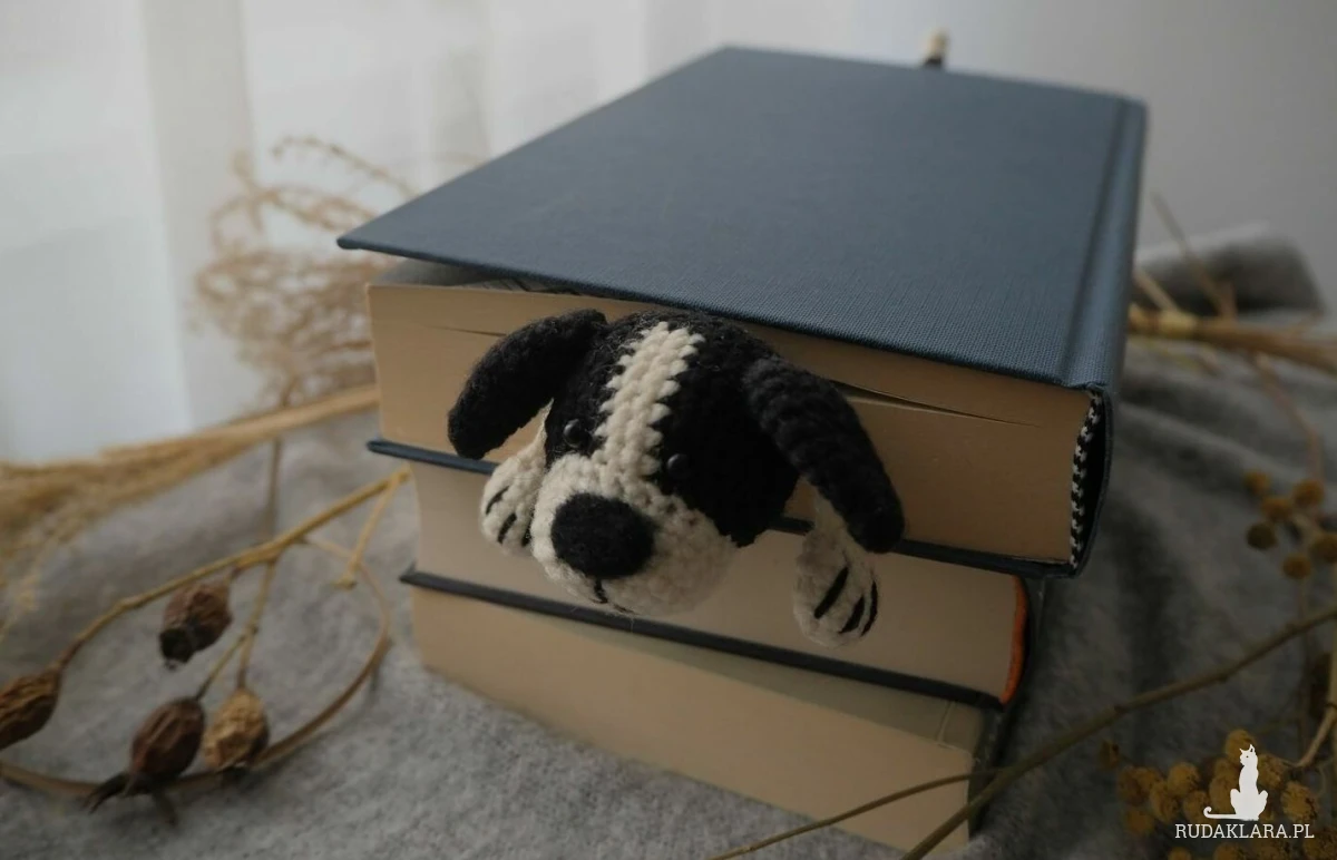 Zakładka do książki z sympatycznym pieskiem wykonana z włóczki na szydełku.