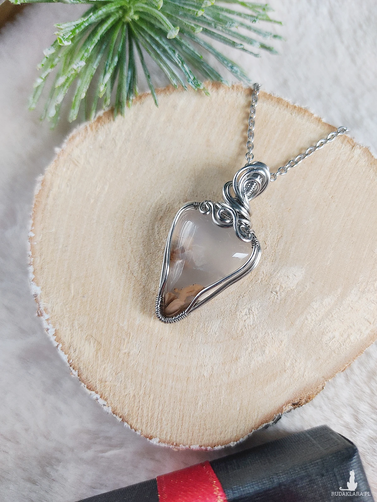 Naszyjnik Agat River Lace "Zimowy Brzeg" ręcznie wykonany z drutów ze stali chirurgicznej metodą wire wrapping.