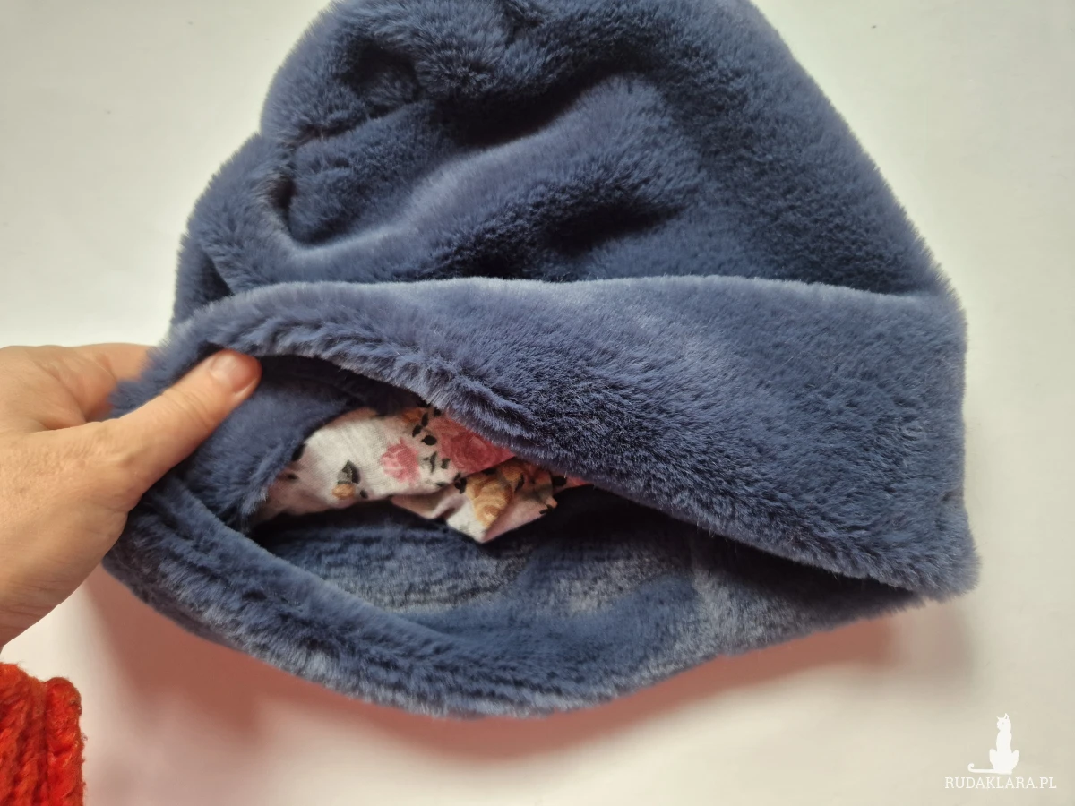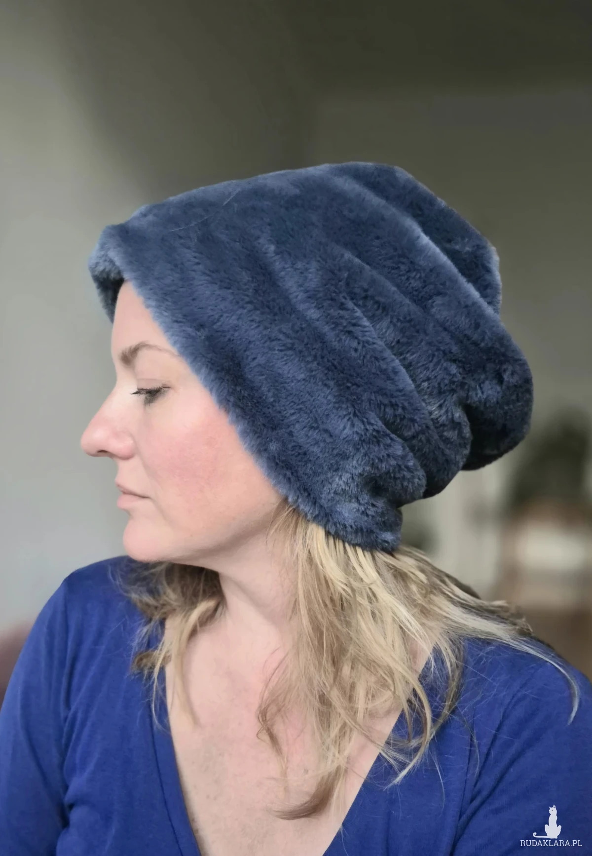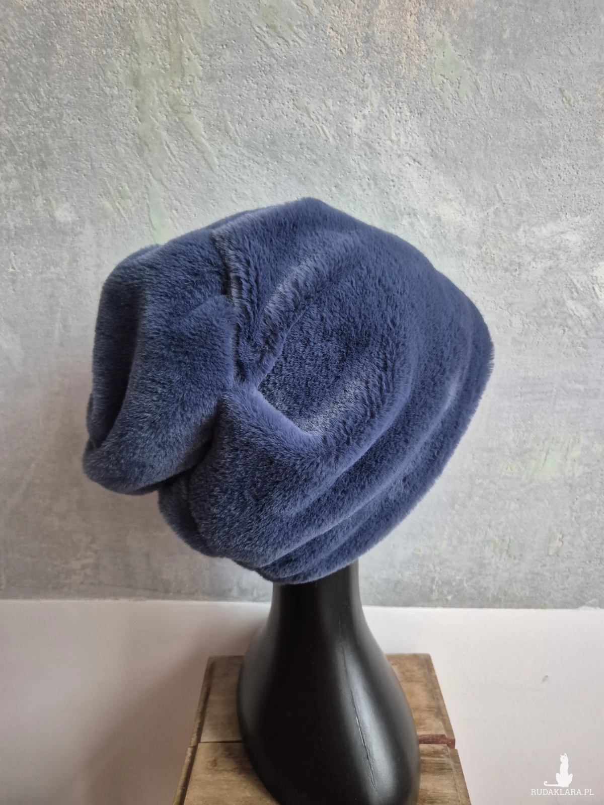 Czapka futrzana niebieska ociepła na podszewce, prezentuje się niezwykle oryginalnie nie dla szarej myszki dla odważnych pewnych siebie kobitek polecam pojedyncza sztuka box a1