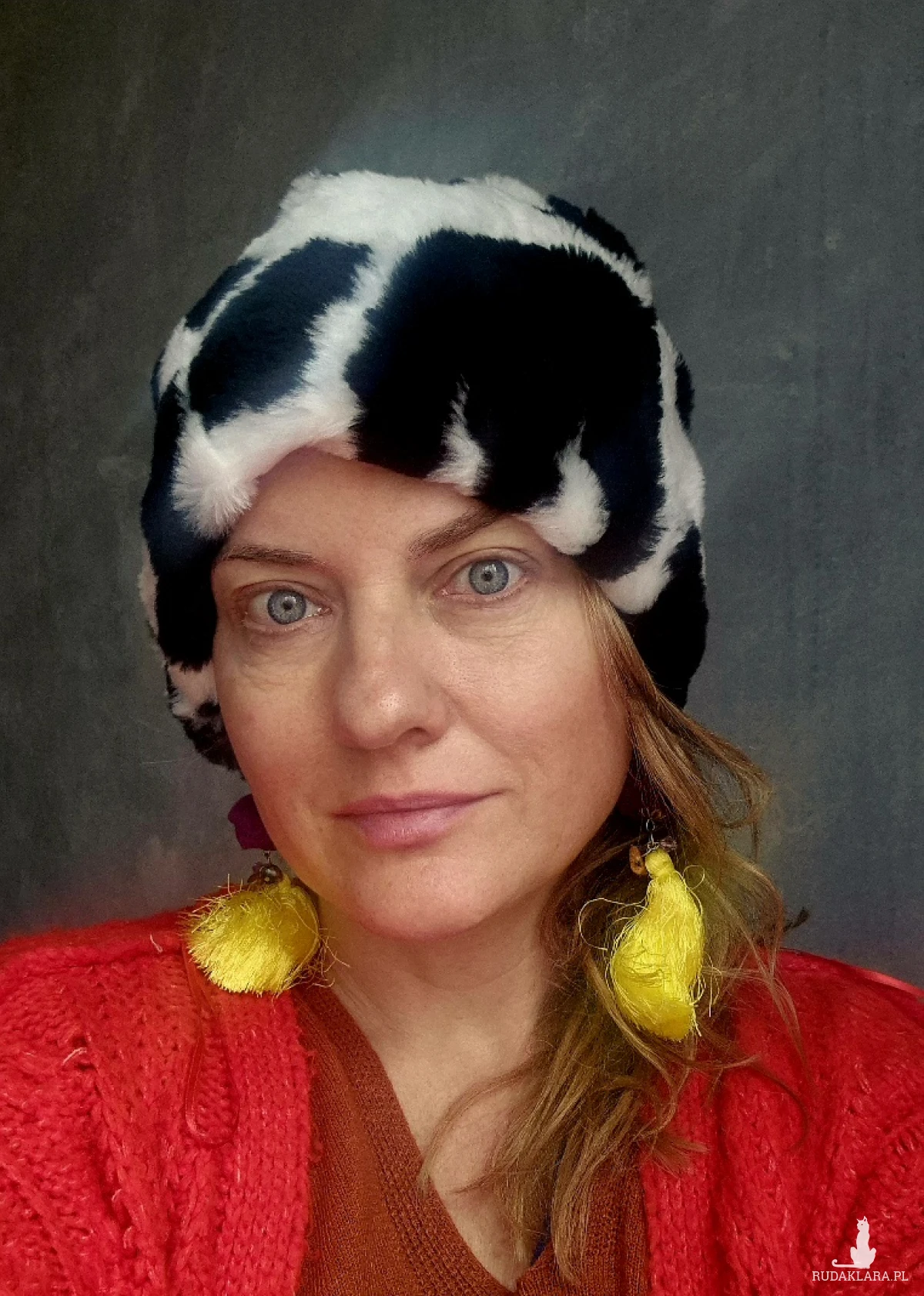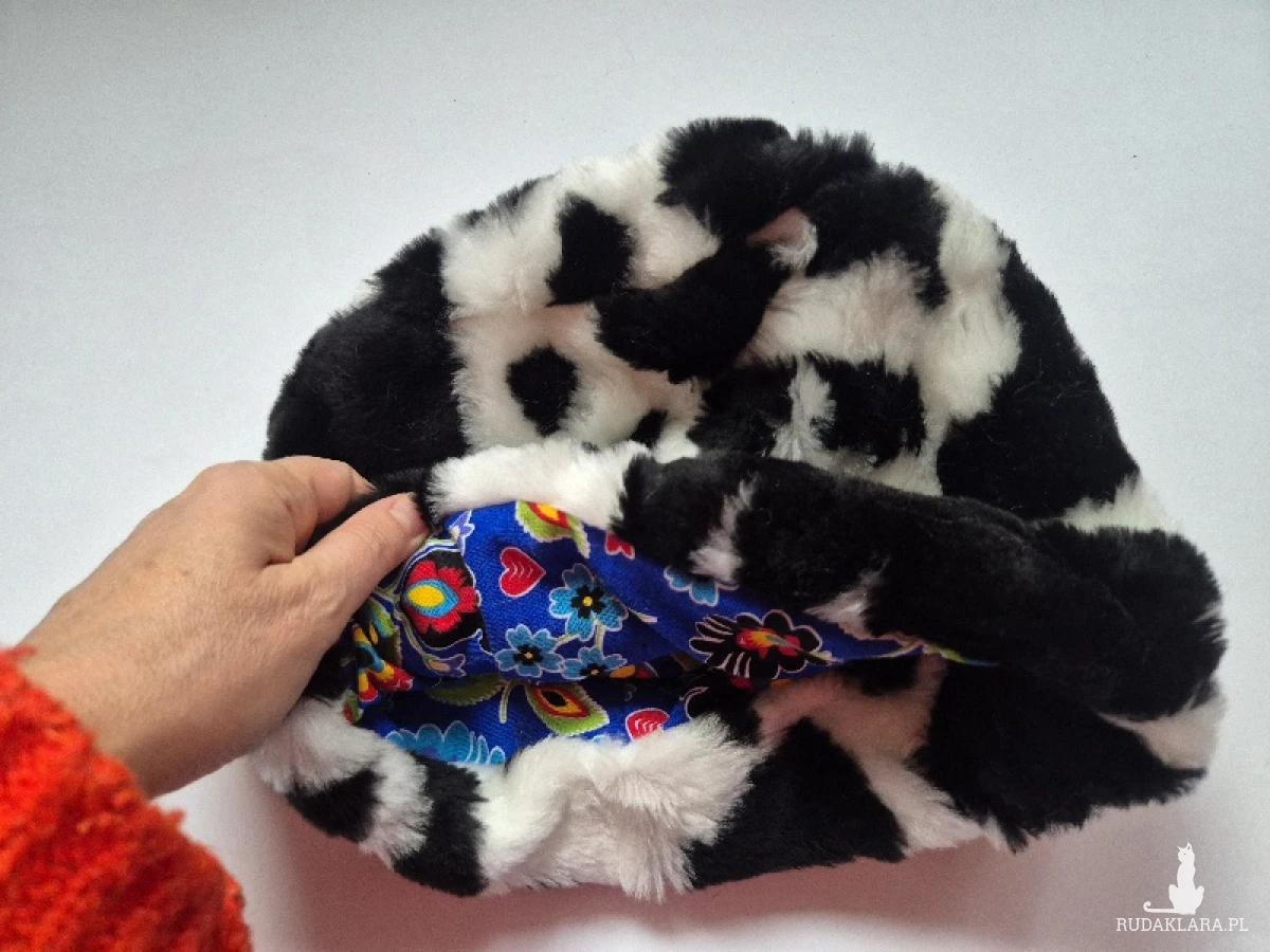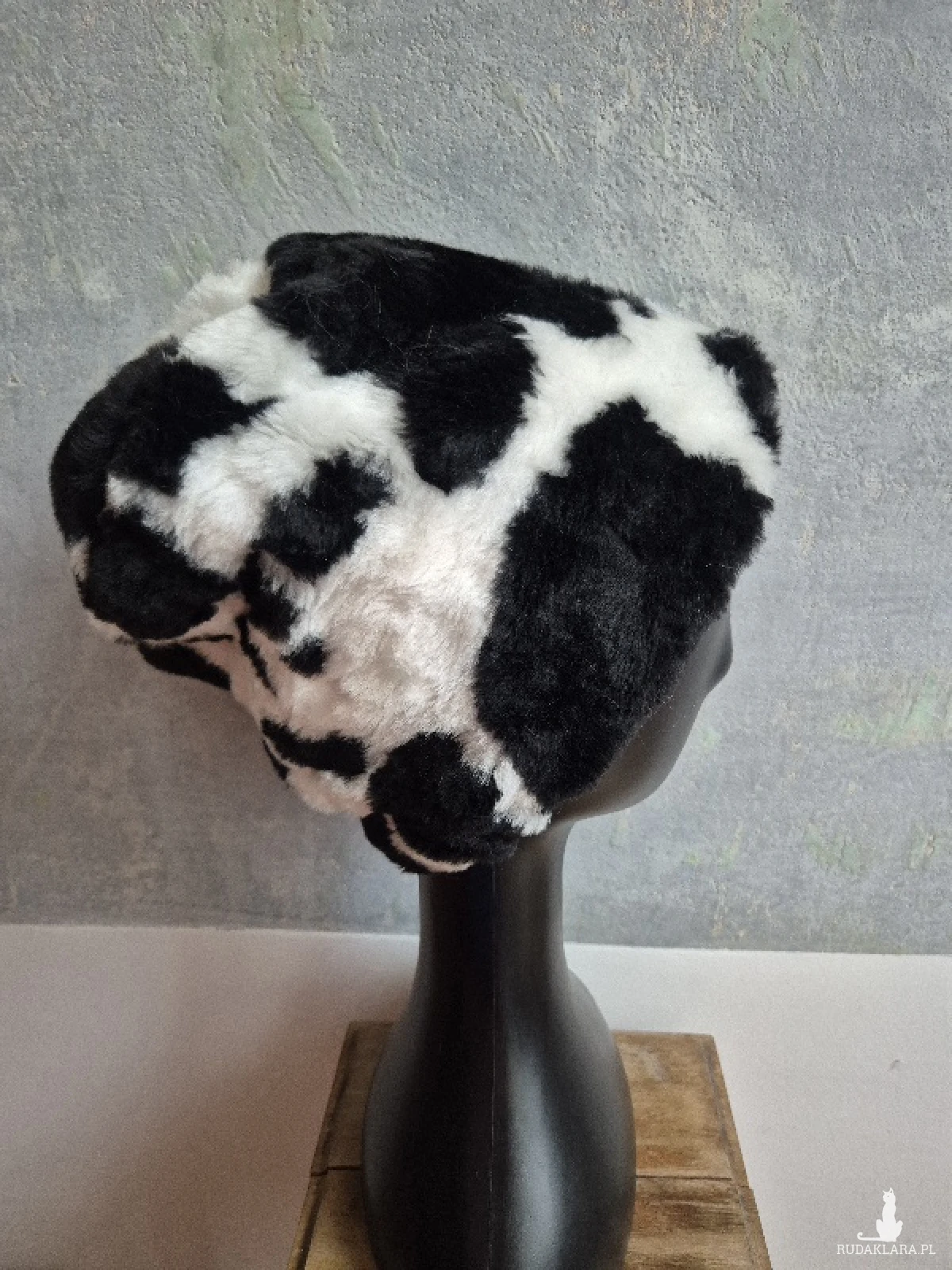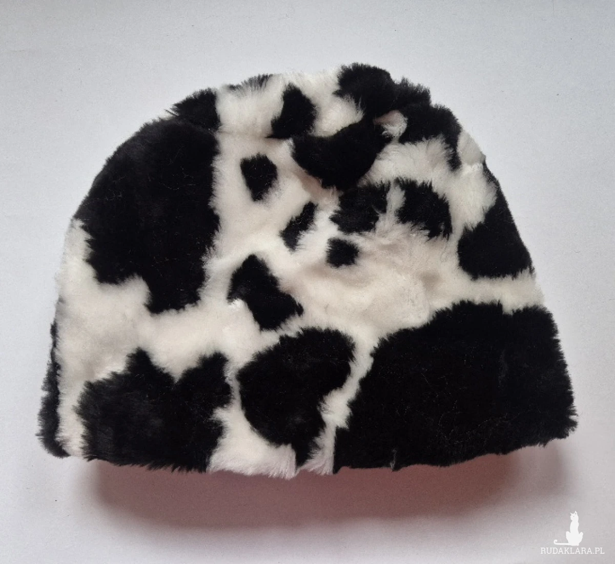 czapka czarna krowa w kropki bordo sztuczne futerko